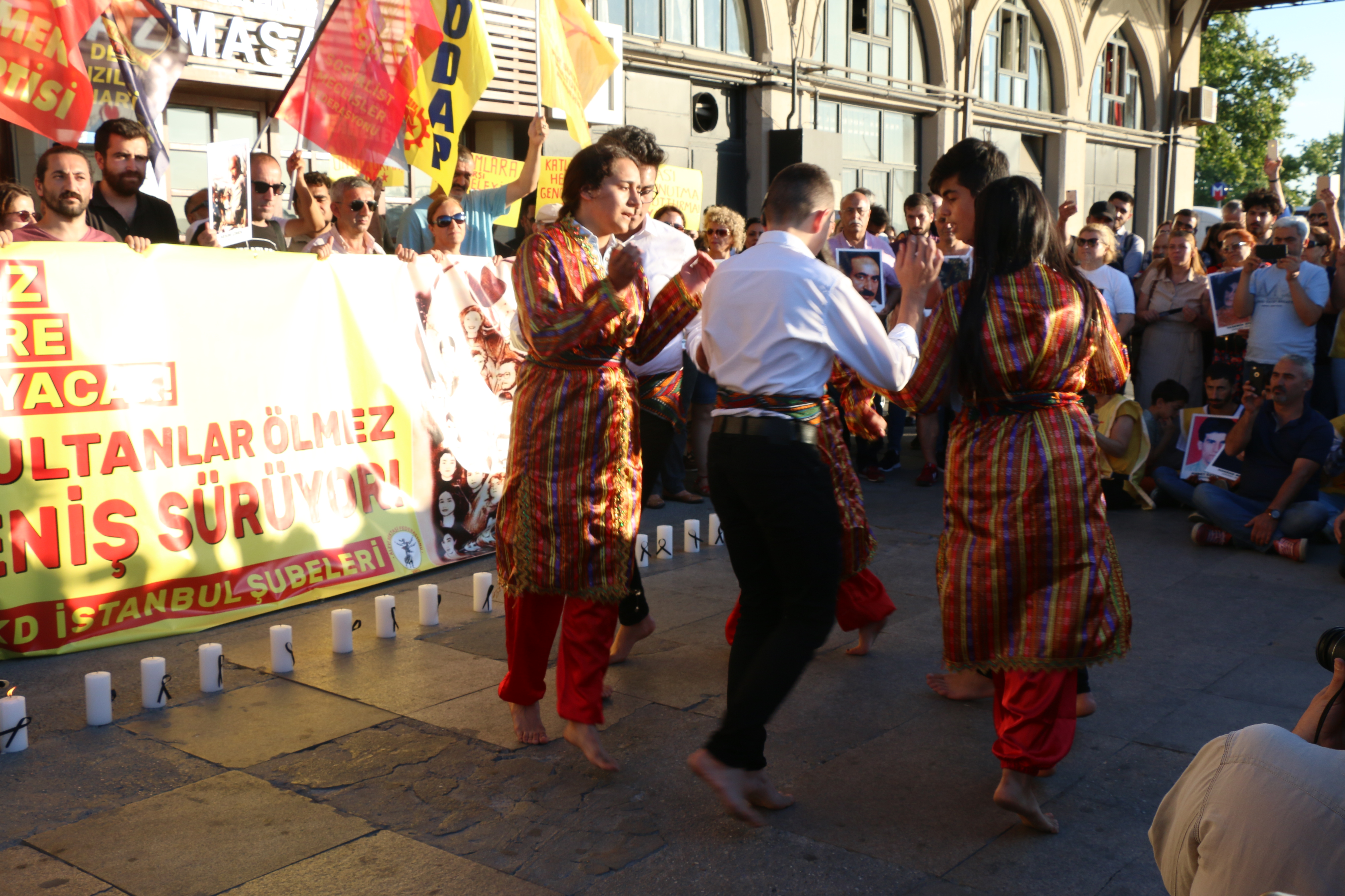 “Pir Sultanlar yaşıyor savaşıyor”, “Sivas’ın ışığı sönmeyecek” sloganları atıldı. Katliamda yaşamını yitirenler için deyişler okundu.