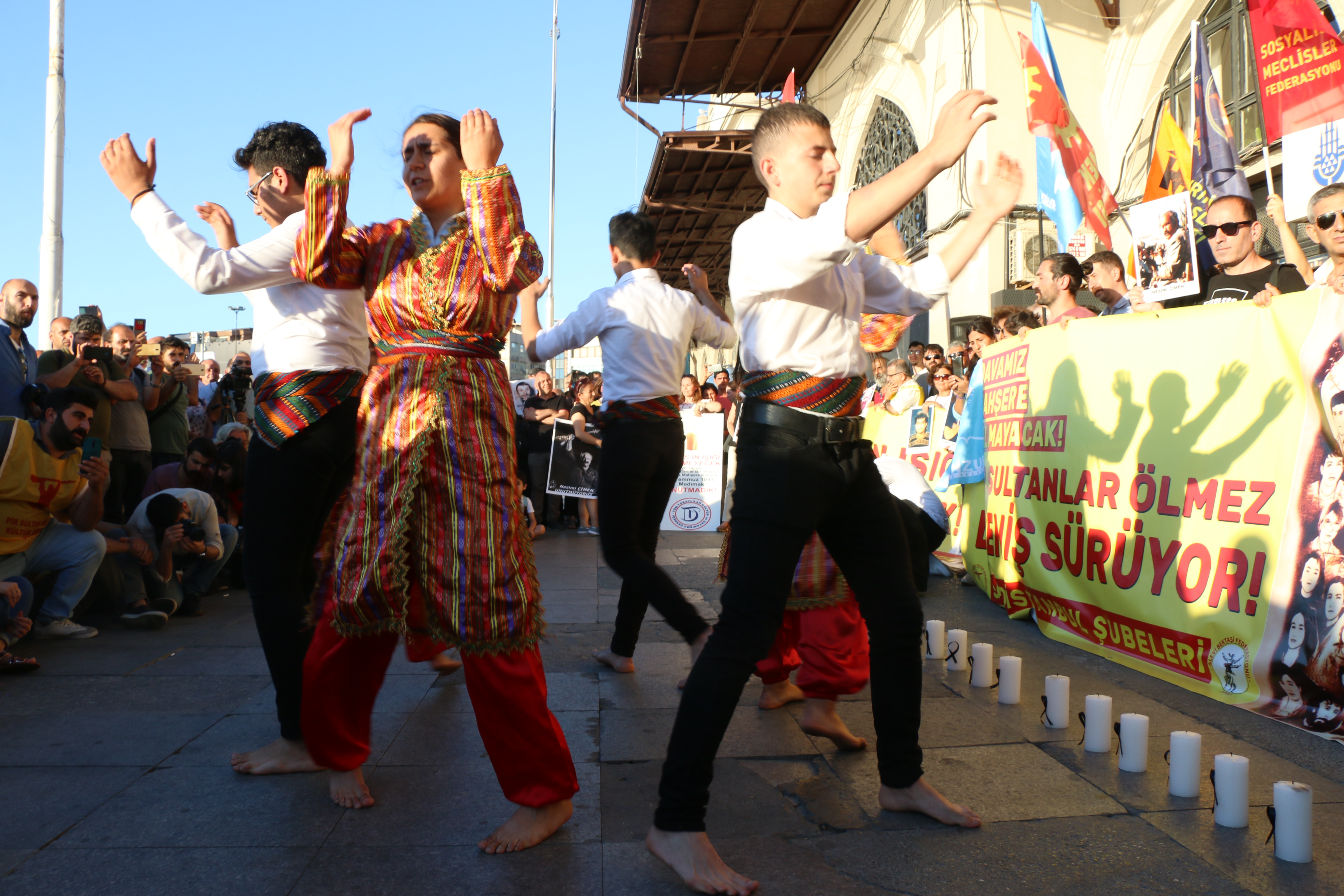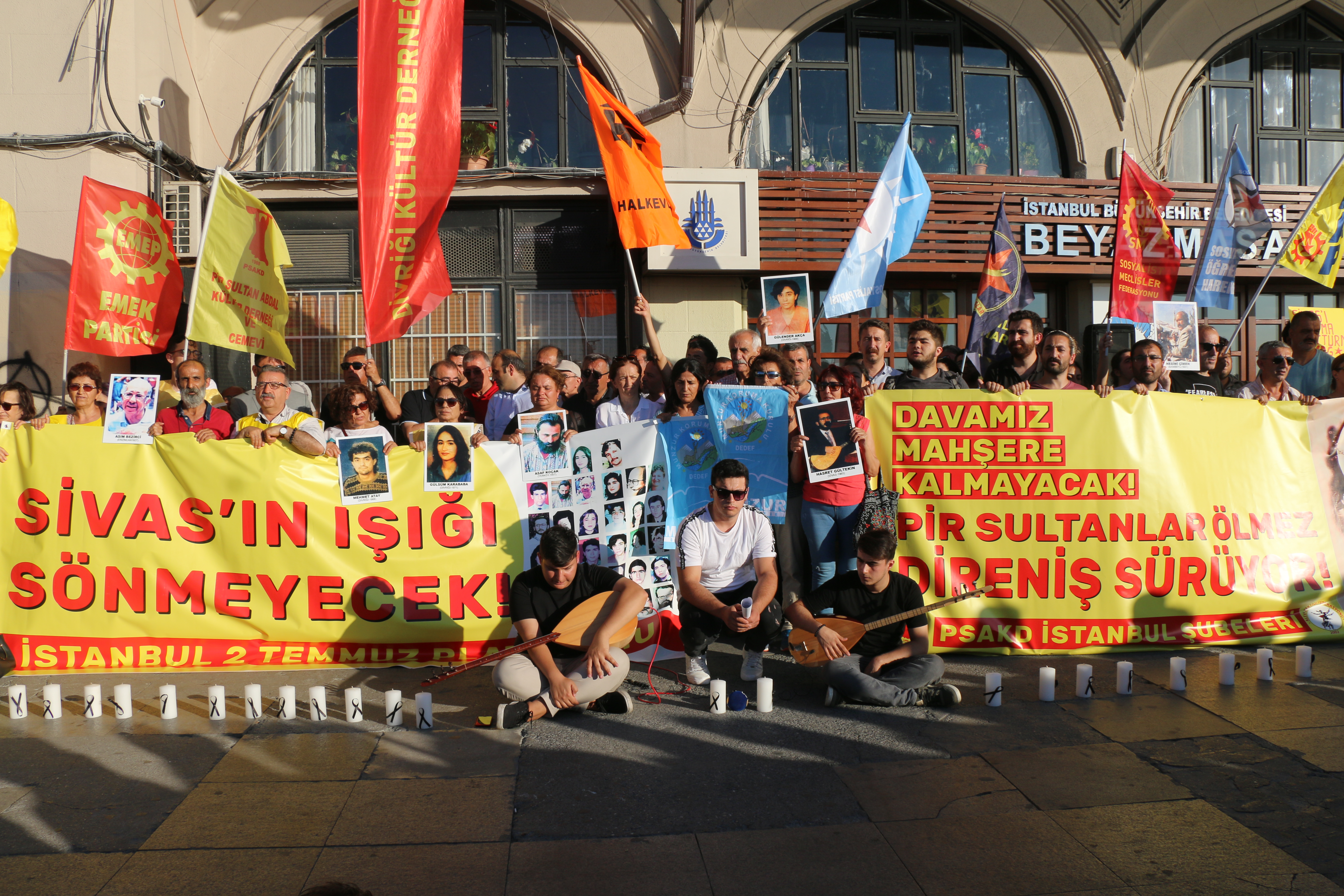 “Pir Sultanlar yaşıyor savaşıyor”, “Sivas’ın ışığı sönmeyecek” sloganları atıldı. Katliamda yaşamını yitirenler için deyişler okundu.