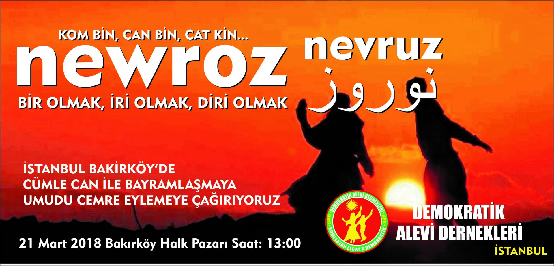 Demokratik Alevi Derneği İstanbul Şubeleri 21 Mart Bakırköy’de yapılacak Newroz kutlamalarına çağrıda bulundu.