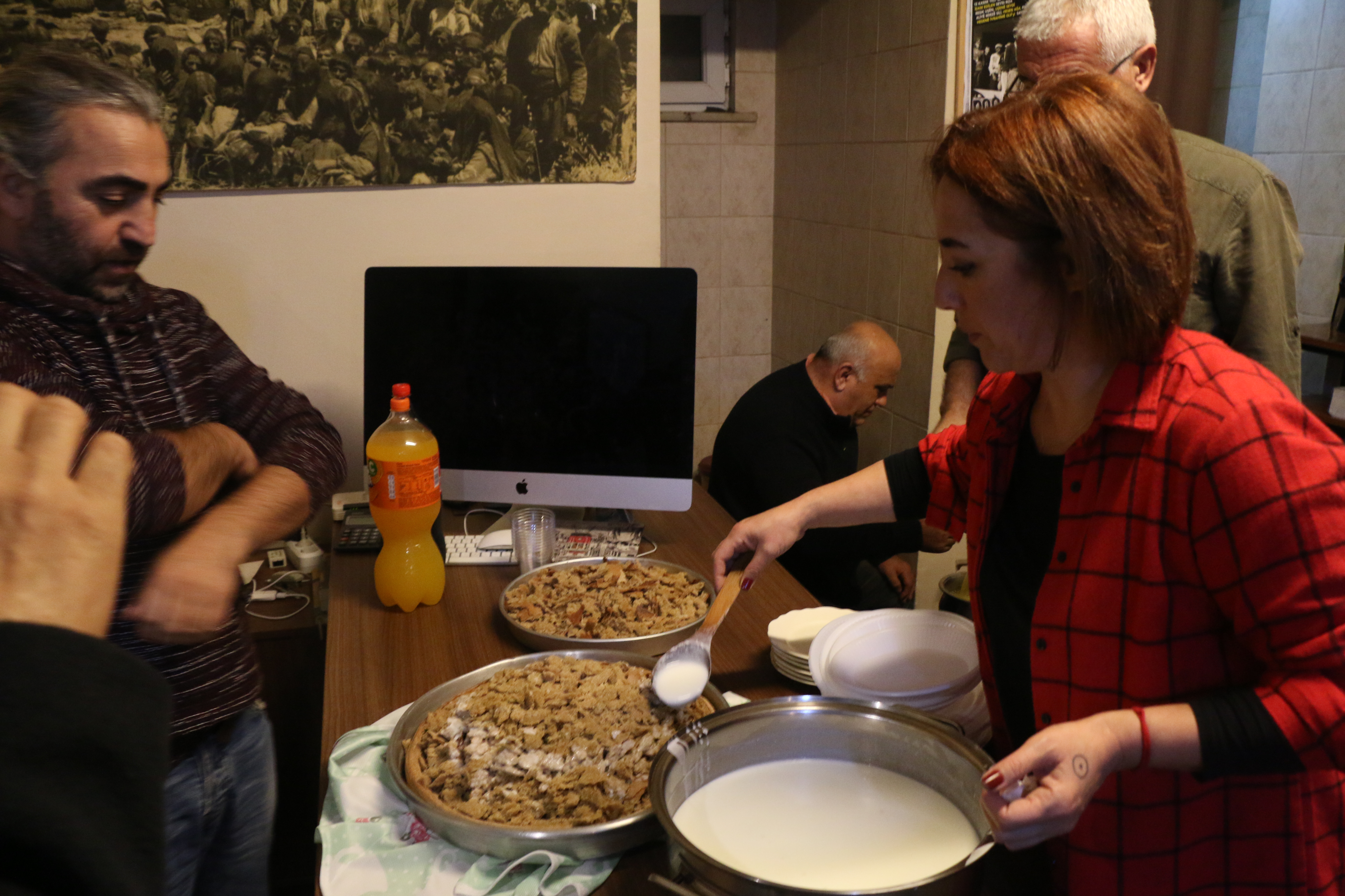 Gağand kutlamasında konuşan DAM Üyelerinden Songül Yalçın, “Biz Dersimliler burada Gağandı kutluyoruz. Gağand demek eski yılı uğurlamak yeni yılı mutlu, sağlıklı ve barış içerisinde geçirmektir. Bugün lokmalarımızı yaparken de amacımız barışmak, helalleşmek, hak alıp hak vermektir” diye konuştu.