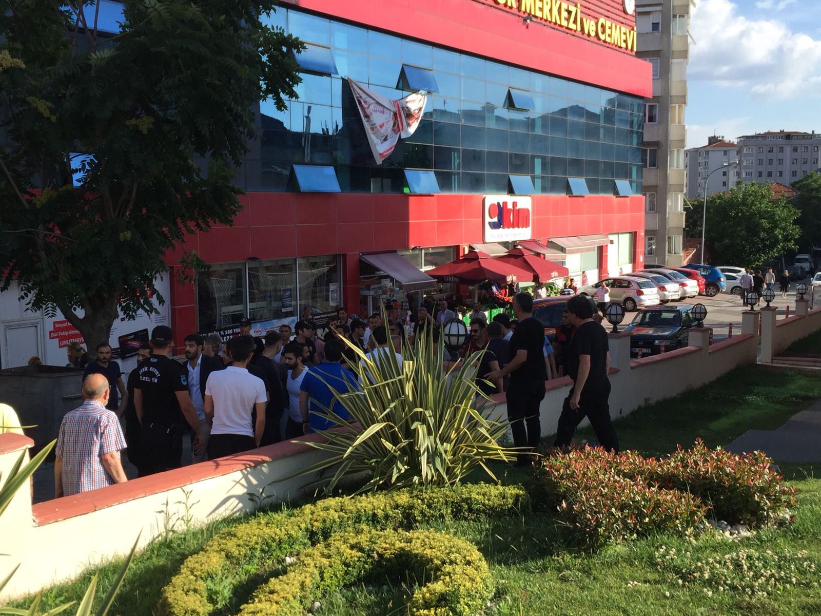 Polisin ise kalabalığı dağıtmayıp orada beklediği belirtiliyor. (HABER MERKEZİ)