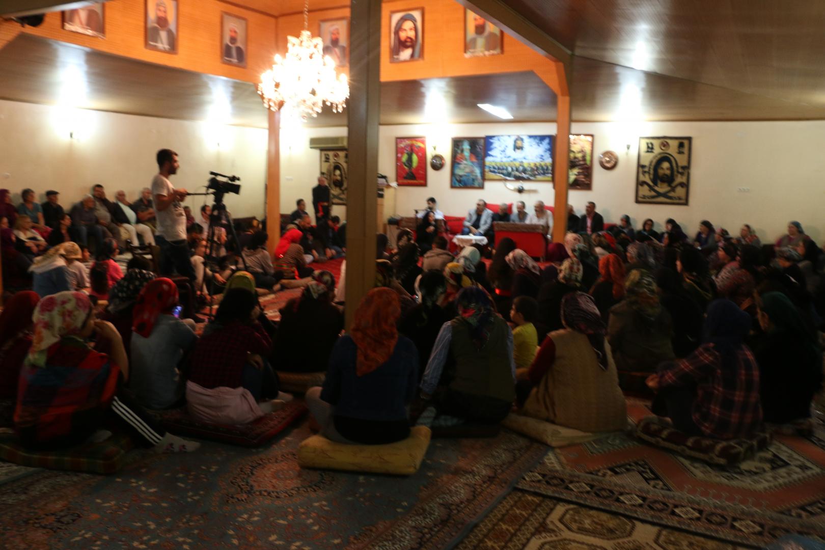 Hubyar Ocağı ve TV10 Programcısı Hüseyin Kelleci ise bir yıl önce televizyonlarının kapatıldığını belirtterek “Bir yıl önce son yayınımızı bu cemevinden yapmıştık ve sonra KHK ile kapatıldık. Ama biz, ‘Ferman Yezit’in ise meydanlar bizimdir’ dedik ve şimdi yine buradayız” dedi.
