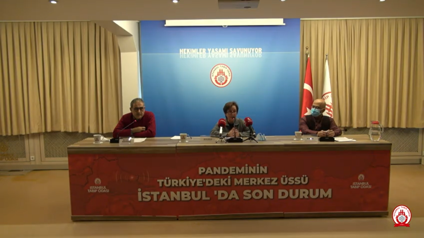 İstanbul Tabip Odası (İTO) Cağaloğlu’ndaki binasında “Pandeminin Türkiye’deki Merkez Üssü İstanbul’da Son Durum” başlıklı bir basın açıklaması yaptı. Salgının en başından beri kontrol edilemediğini belirten İstanbul Tabip Odası, açıklamasında “Meslektaşlarımız artan iş ve hastalık yükü altında güvensiz çalışma ortamı nedeniyle tükeniyor. Sağlık çalışanları korunmaktan öte hasta hasta çalışmak zorunda kalıyor. En başından beri kontrol edilemeyen salgın neredeyse kendi doğal seyrine bırakılmış durumda yayılmaya ve öldürmeye devam ediyor” ifadelerini kullandı.