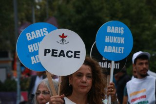 Ardından, İçişleri Bakanlığı’nca görevinden uzaklaştırılan, yerine kayyum atanan Mardin’in seçilmiş Büyükşehir Belediye Başkan Adayı Ahmet Türk’ün mesajı okundu. Türk mesajında şunları vurguladı: “Bugün çok istememe rağmen hakkımdaki davalar nedeniyle imza vermem gerektiği için aranızda bulunamıyorum.Bugün barış mücadelesi için alanlarda olan her birimiz biliyoruz ki barış adaletle, eşitlikle özgürlükle gelecek. İradesine sahip çıkan kayyumlara teslim etmeyen halkın kararlılığı inadı, örgütlü duruşu ve mücadelesi ile gelecek. Hem ülkemizde hem bölgemizde çatışma ve savaşa karşı barışı örgütleyeceğiz. Bu vesile ile 1 Eylül dünya barış günü hepimize kutlu olsun.”