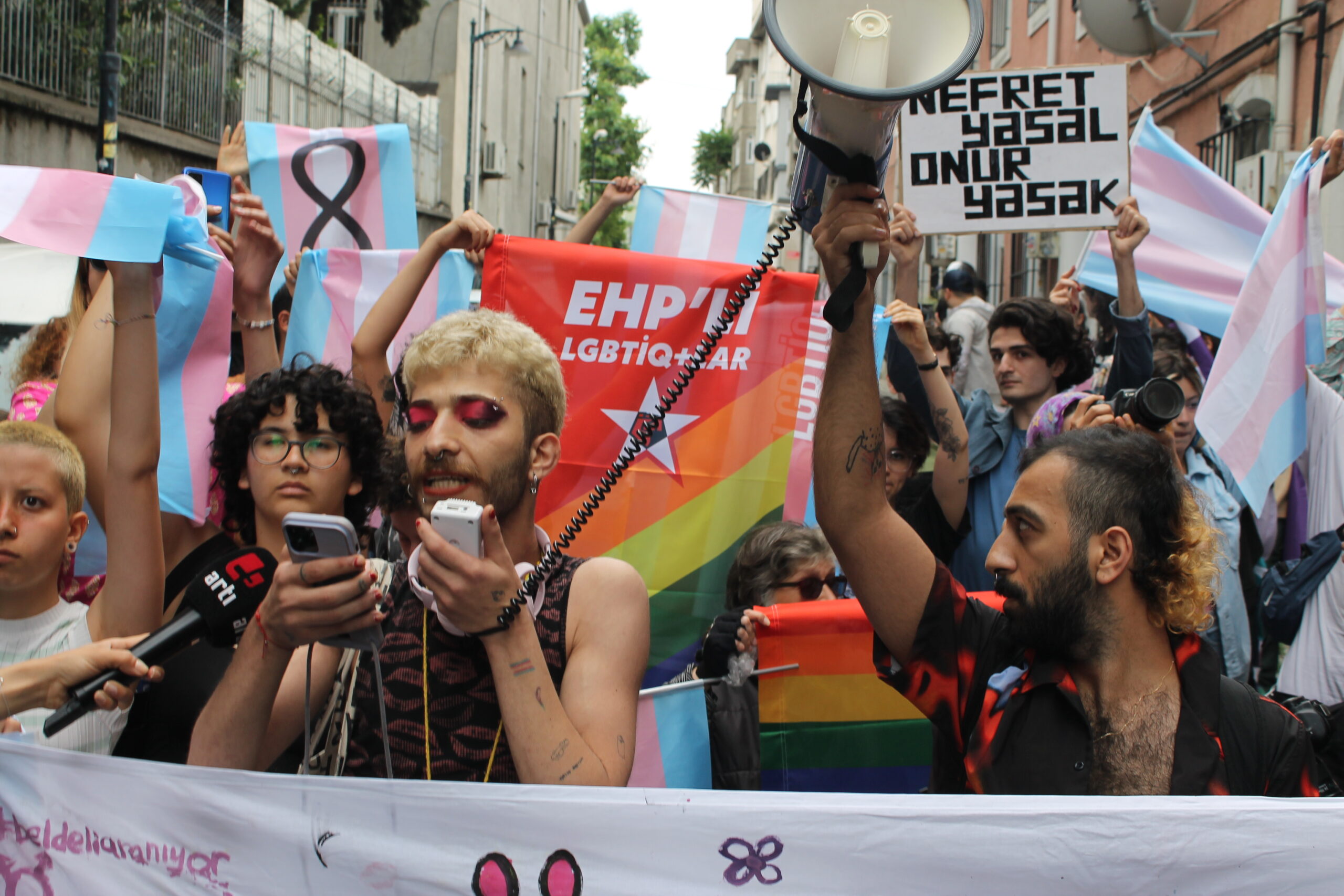 PİRHA – İstanbul’da altı yıl aranın ardından düzenlenen 9. Trans Onur Yürüyüşü valilik tarafından yasaklandı. Tüm engellemelere rağmen Harbiye’de bir araya gelen translar basın açıklaması yaptı. Açıklama sonrası dağılan grubu takip eden polis Dolapdere’de aralarında basın açıklamasını okuyan Trans Pride Komitesi’nden Yusuf da olmak üzere birçok kişiyi ters kelepçeyle gözaltına aldı. Gözaltıları görüntülemek isteyen basın mensupları da alandan darp edilerek uzaklaştırıldı.