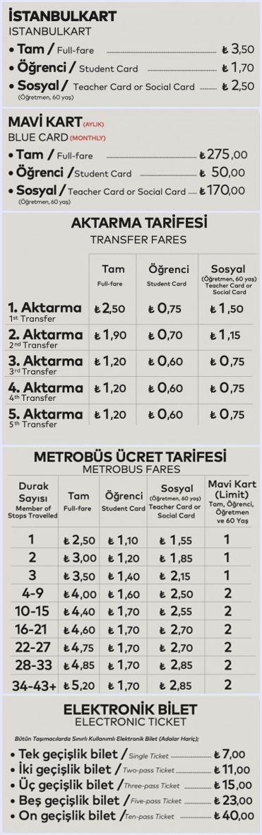 İETT TOPLU ULAŞIM ÜCRET TARİFESİ