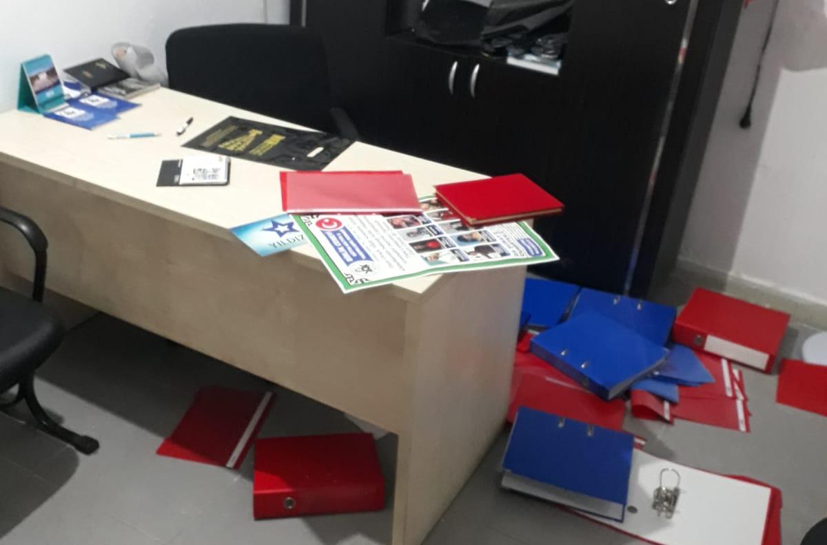 Dün akşam 19.30- ile 20.00 saatleri arasında cemevine giren şahıslar, mutfak ve yemekhanede bulunan masa ve sandalyeleri, çekmecelerde bulunan dosyaları yerlere atıp, etrafı dağıttıkları görüldü.