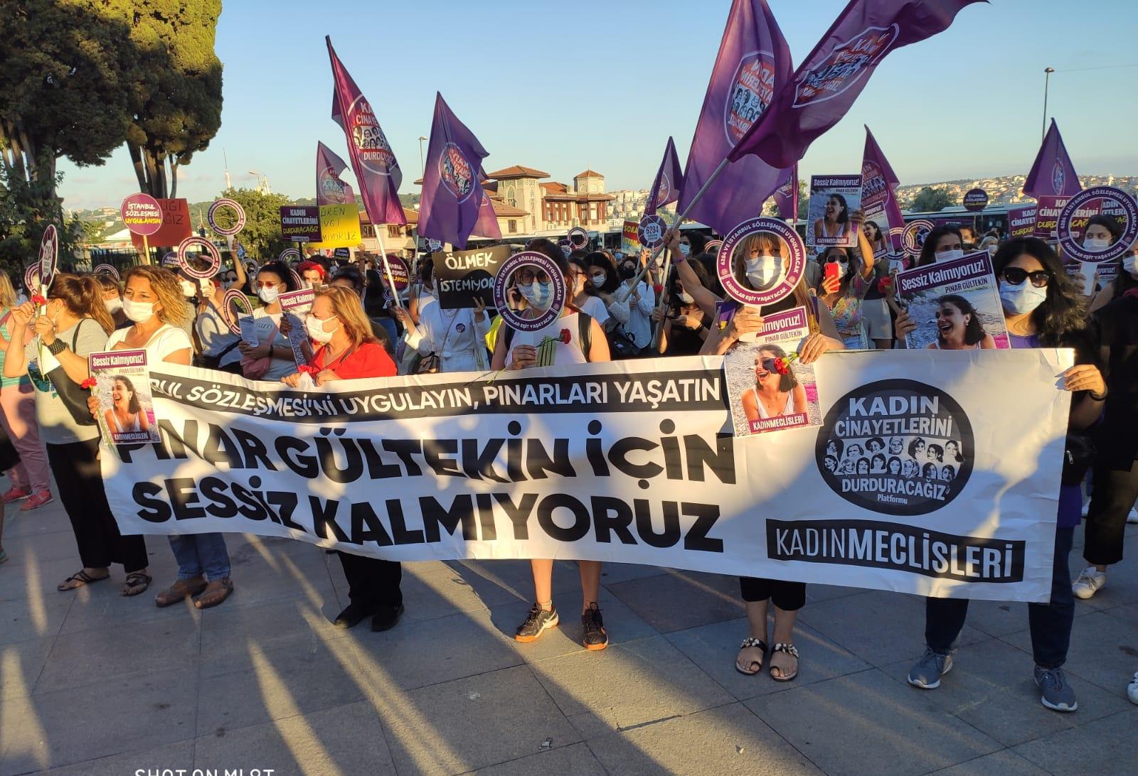 İstanbul’da kadınlar, Pınar Gültekin’in katledilmesini protesto etmek amacıyla Beşiktaş’ta bir araya geldi.