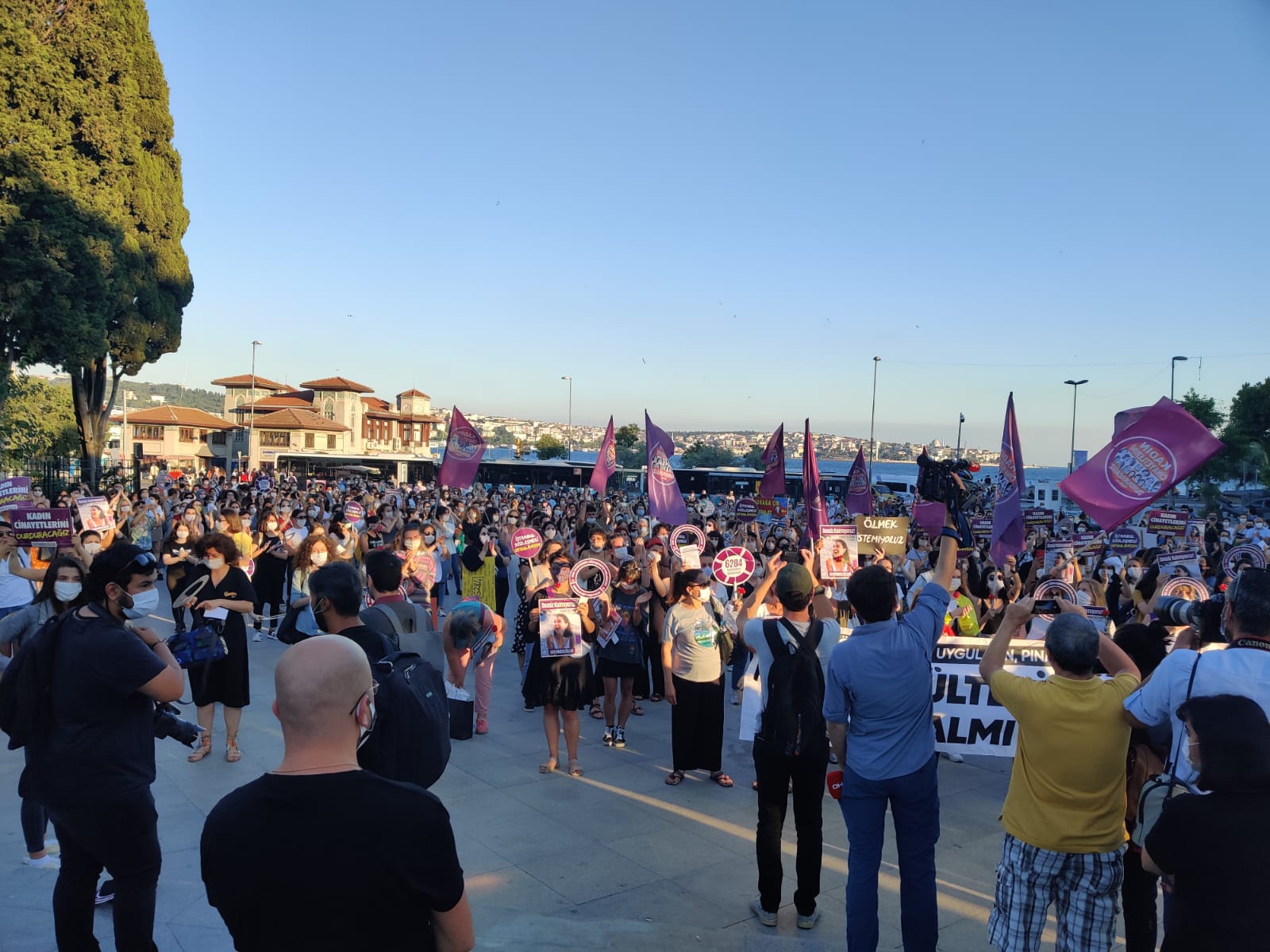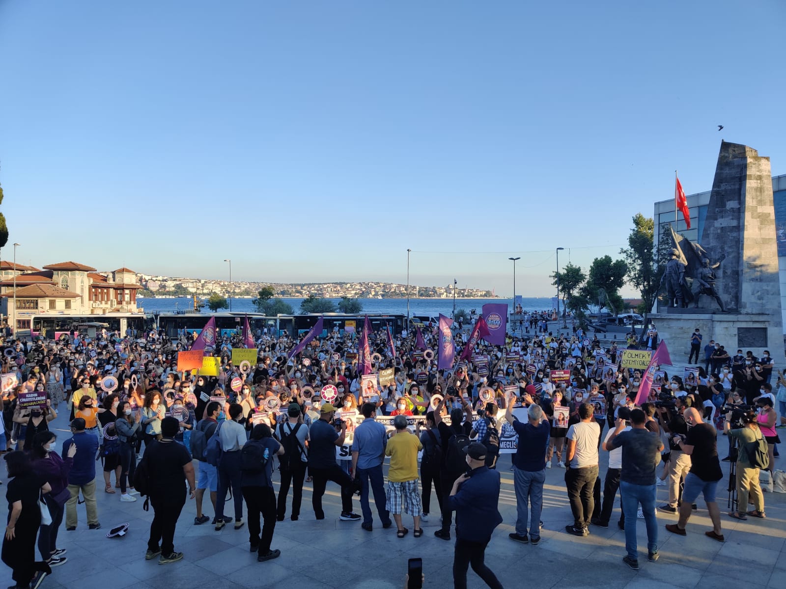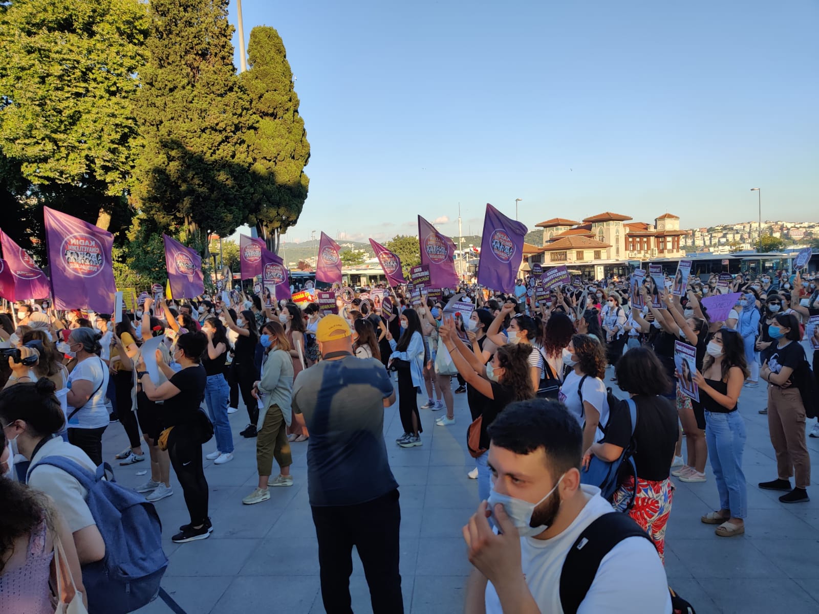 İstanbul Beşiktaş’ta bir araya gelen kadınlar, “Kadın yaşam özgürlük”, “Asla yalnız yürümeyeceksin” sloganlarıyla erkek şiddetini protesto etti. İstanbul Sözleşmesi’nin bir an önce uygulamaya konulması çağrısında bulunan kadınlar, meydanlardan kazanarak gitmek istediklerini belirterek “Milyonlarca kadının öfkesiyle bu meydanlardayız. Her kadına diyoruz ki ‘asla yalnız yürümeyeceksin.’ İstanbul Sözleşmesi kadınlar için yaşamdır. Bunlar ne diyorlar? ‘Gelenek’ diyorlar. Geleneğe bakar mısınız!” açıklamasını yaptı.