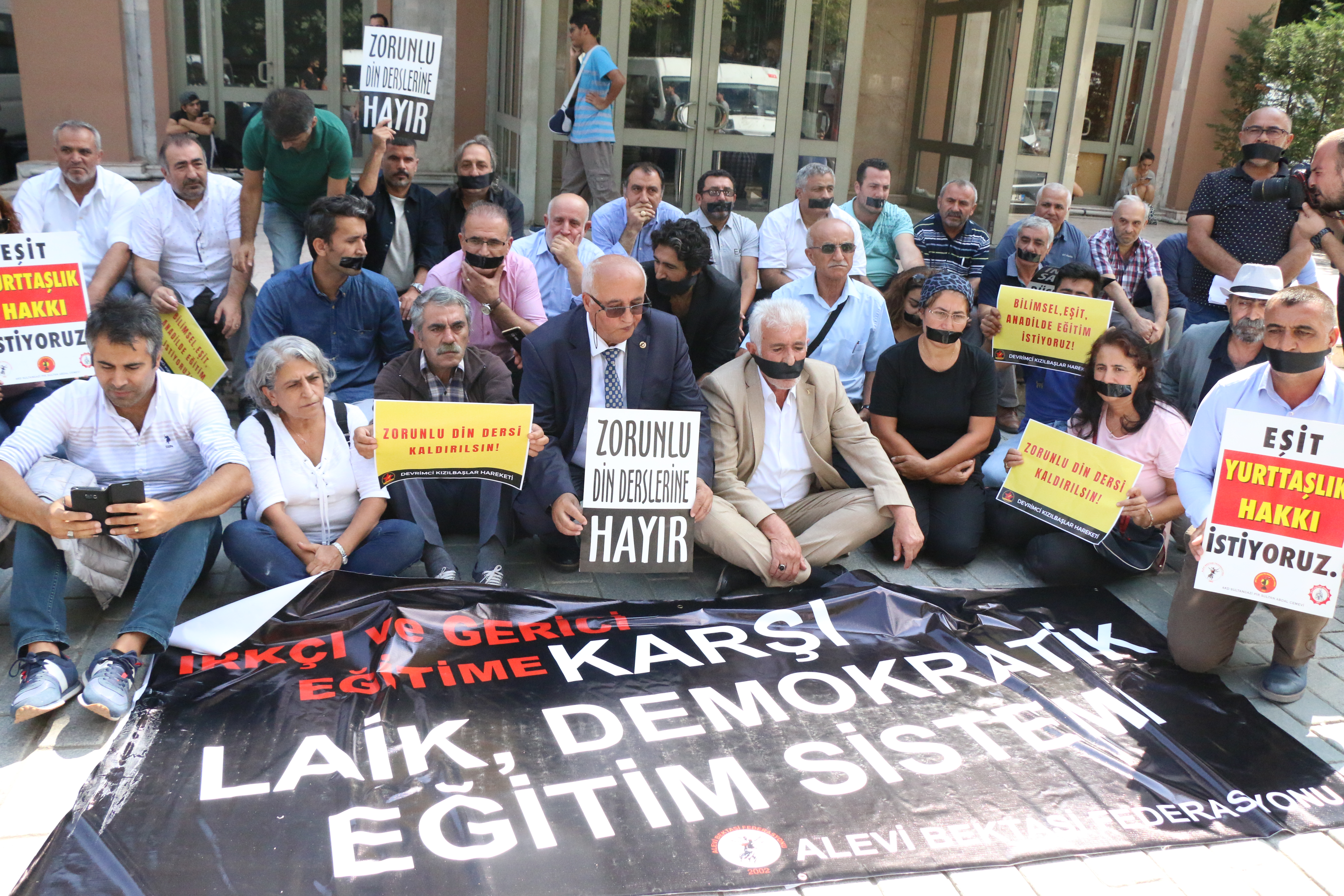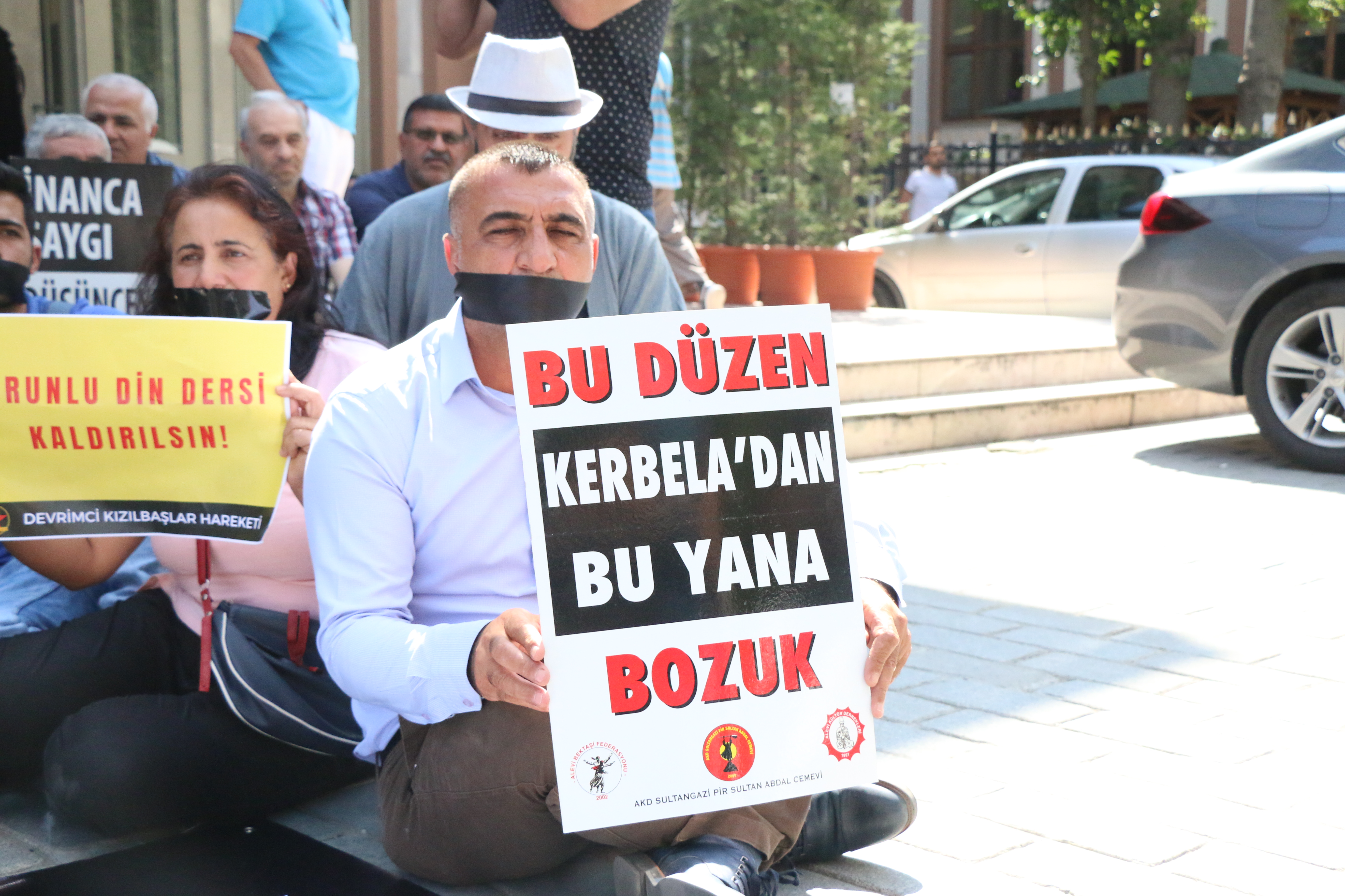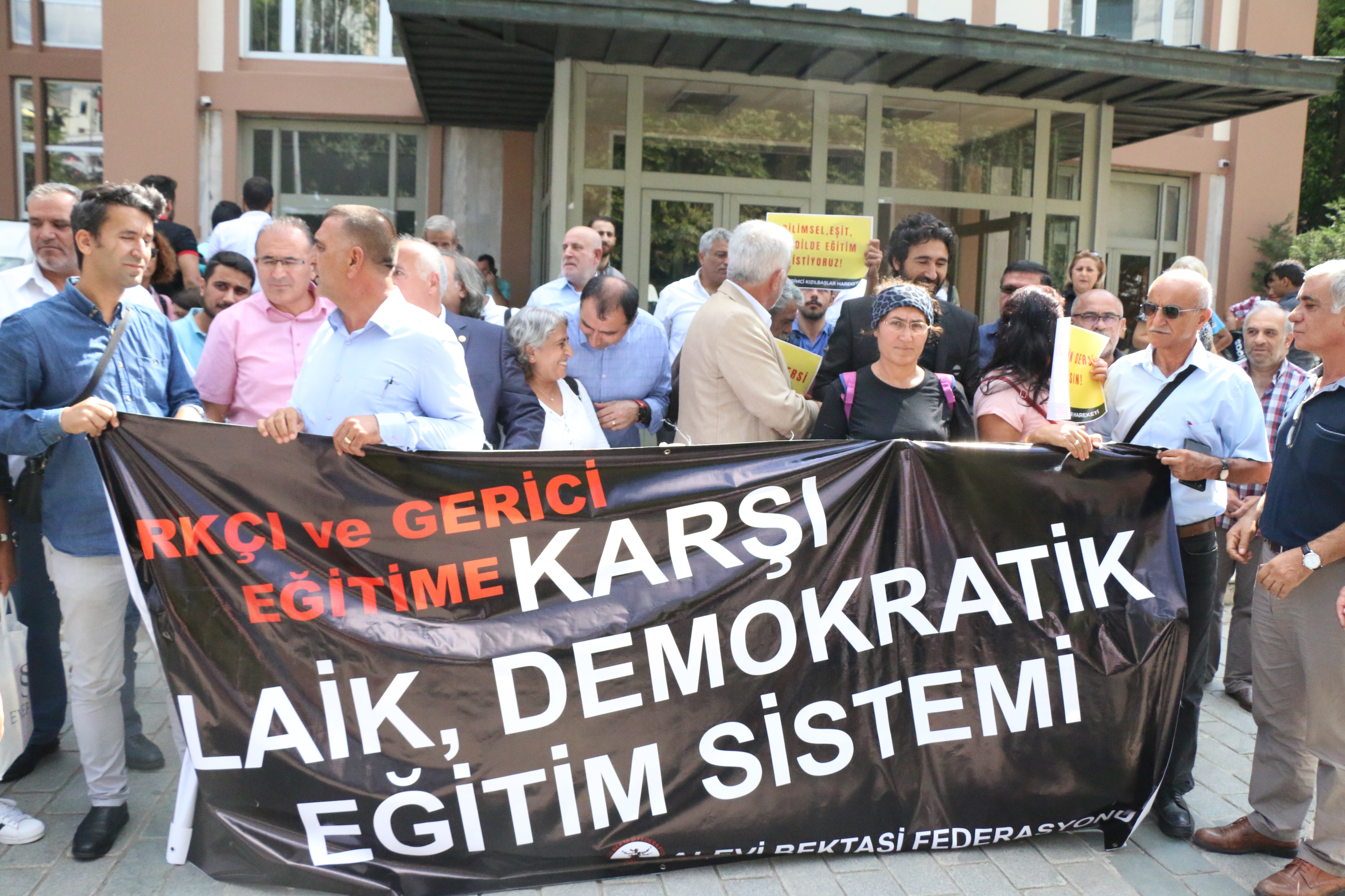 Açıklamaya Hacı Bektaş Veli Anadolu Kültür Vakfı, Alevi Dernekleri Federasyonu, Demokratik Alevi Dernekleri’nin yanı sıra HDP Milletvekilleri Ali Kenanoğlu ve Zeynel Özen de katıldı. ABF’nin “Irkçı ve gerici eğitime karşı laik, demokratik eğitim sistemi” pankartının açıldığı açıklamada, “Zorunlu din dersi kaldırılsın”, “İnanca saygı, düşünceye özgürlük” dövizleri taşındı.