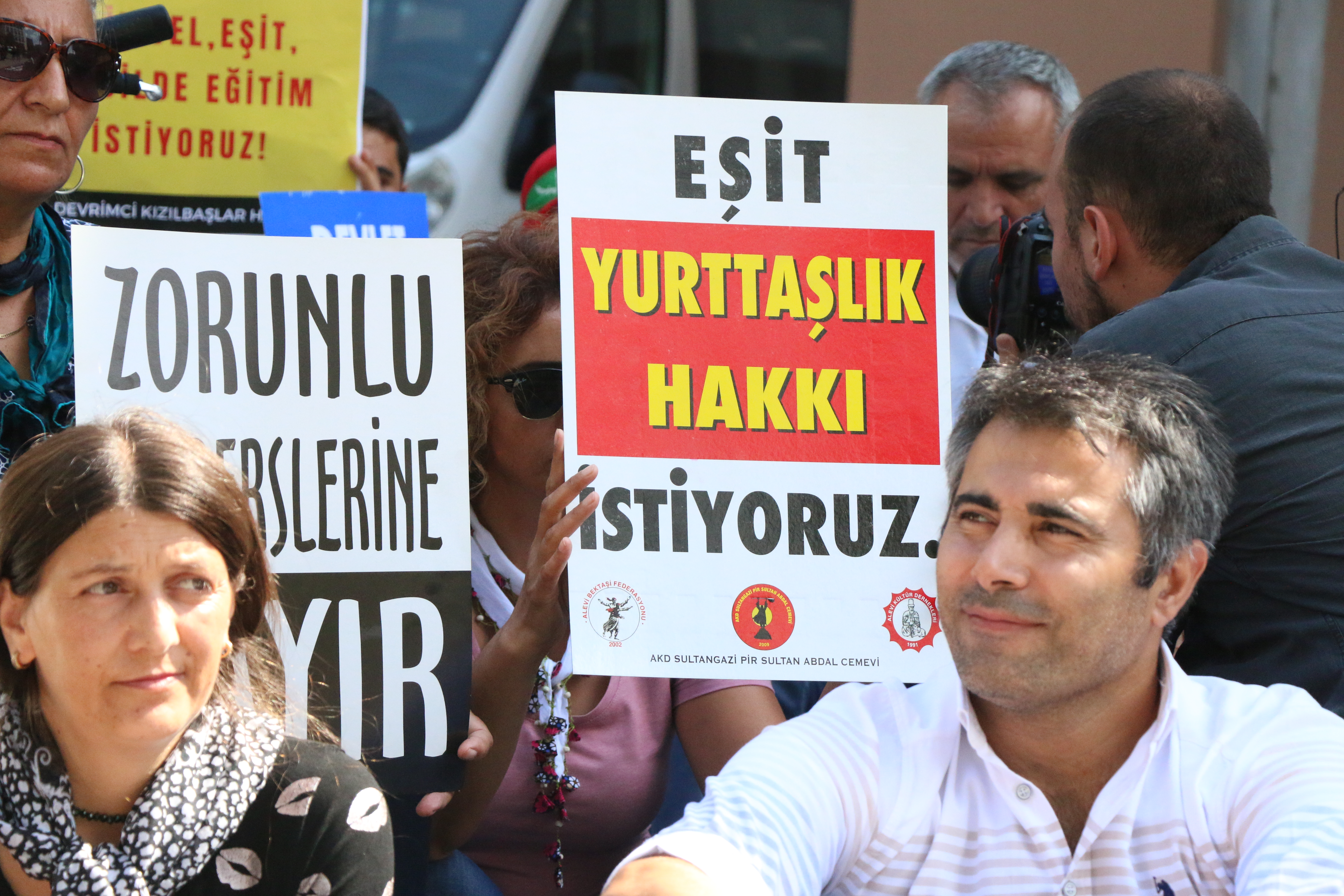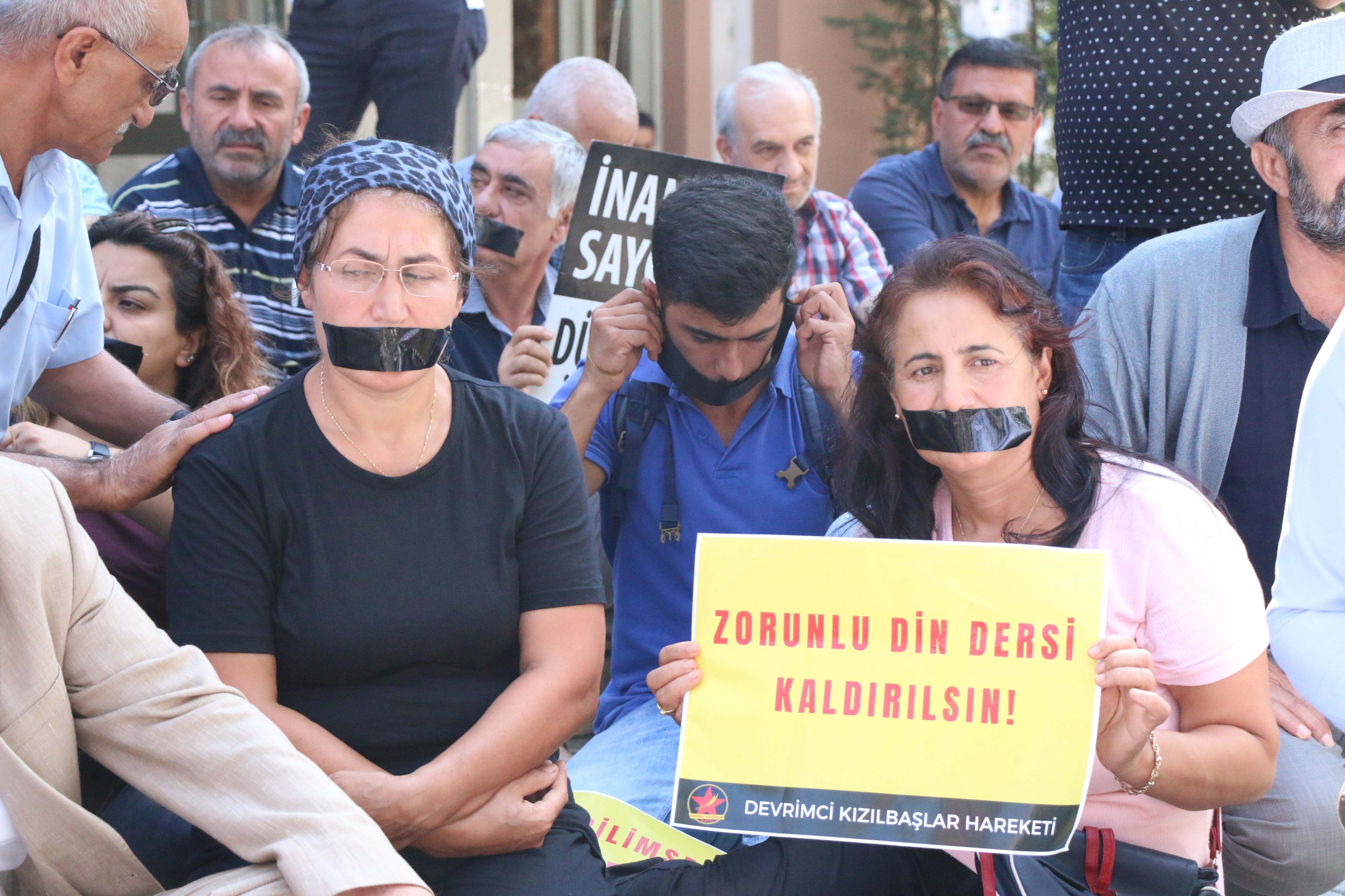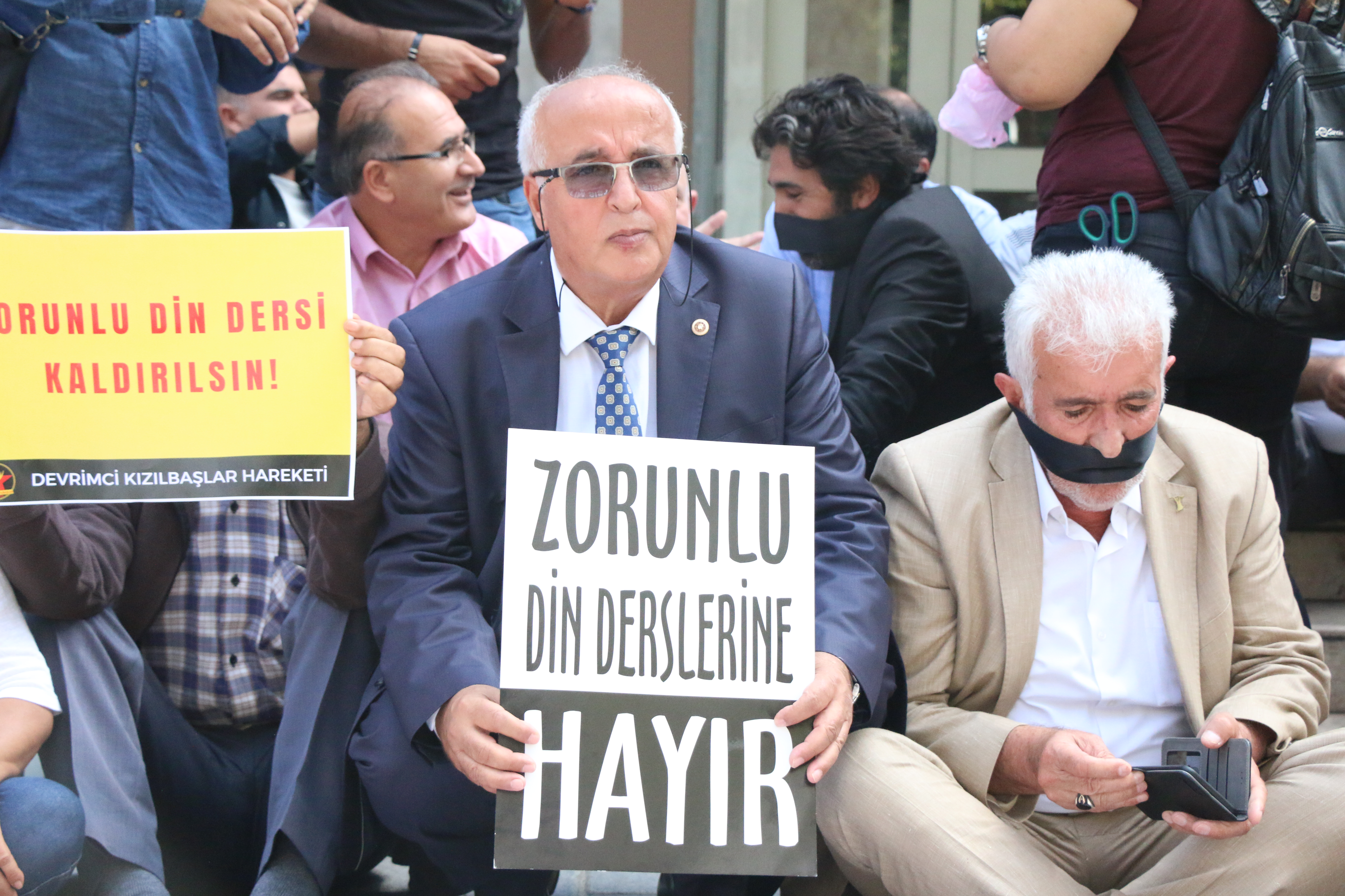 Açıklamaya Hacı Bektaş Veli Anadolu Kültür Vakfı, Alevi Dernekleri Federasyonu, Demokratik Alevi Dernekleri’nin yanı sıra HDP Milletvekilleri Ali Kenanoğlu ve Zeynel Özen de katıldı. ABF’nin “Irkçı ve gerici eğitime karşı laik, demokratik eğitim sistemi” pankartının açıldığı açıklamada, “Zorunlu din dersi kaldırılsın”, “İnanca saygı, düşünceye özgürlük” dövizleri taşındı.