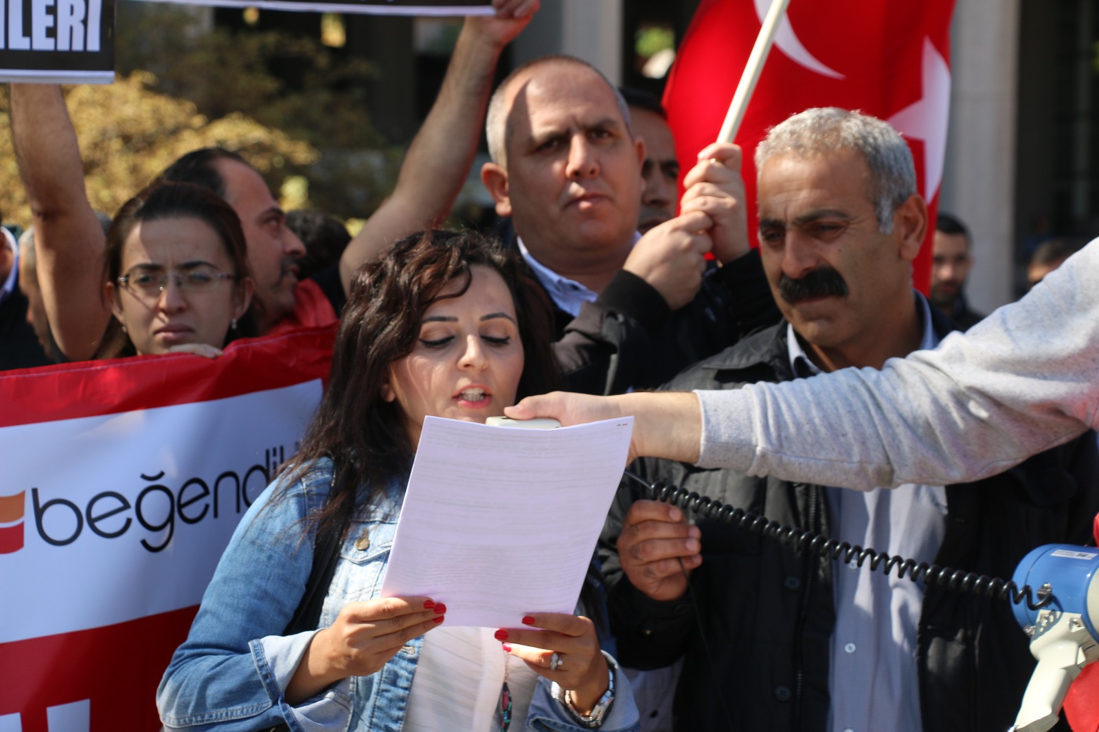 “Bizim bayramımız parasız çocuklarımıza hiçbir şey almadan geçerken, Beğendik grubu kendi bayramını yeni arabalar alarak yeni mağazalar açarak kutladılar” diyen Yükrük, “Biz onlardan haklarımızı istiyoruz, biz direniyoruz, direneceğiz. Sonuna kadar devam edeceğiz. Onlar da kul hakkı yemeyene kadar, başkalarına aynı şeyleri yapmayana kadar biz sesimizi duyurmaya, sizler sayesinde hukuk sayesinde ve bize yardımcı olan sendika Nakliyat- İş sayesinde devam edeceğiz Buraya savcılığa suç duyurusunda bulunmaya geldik” şeklinde konuştu.