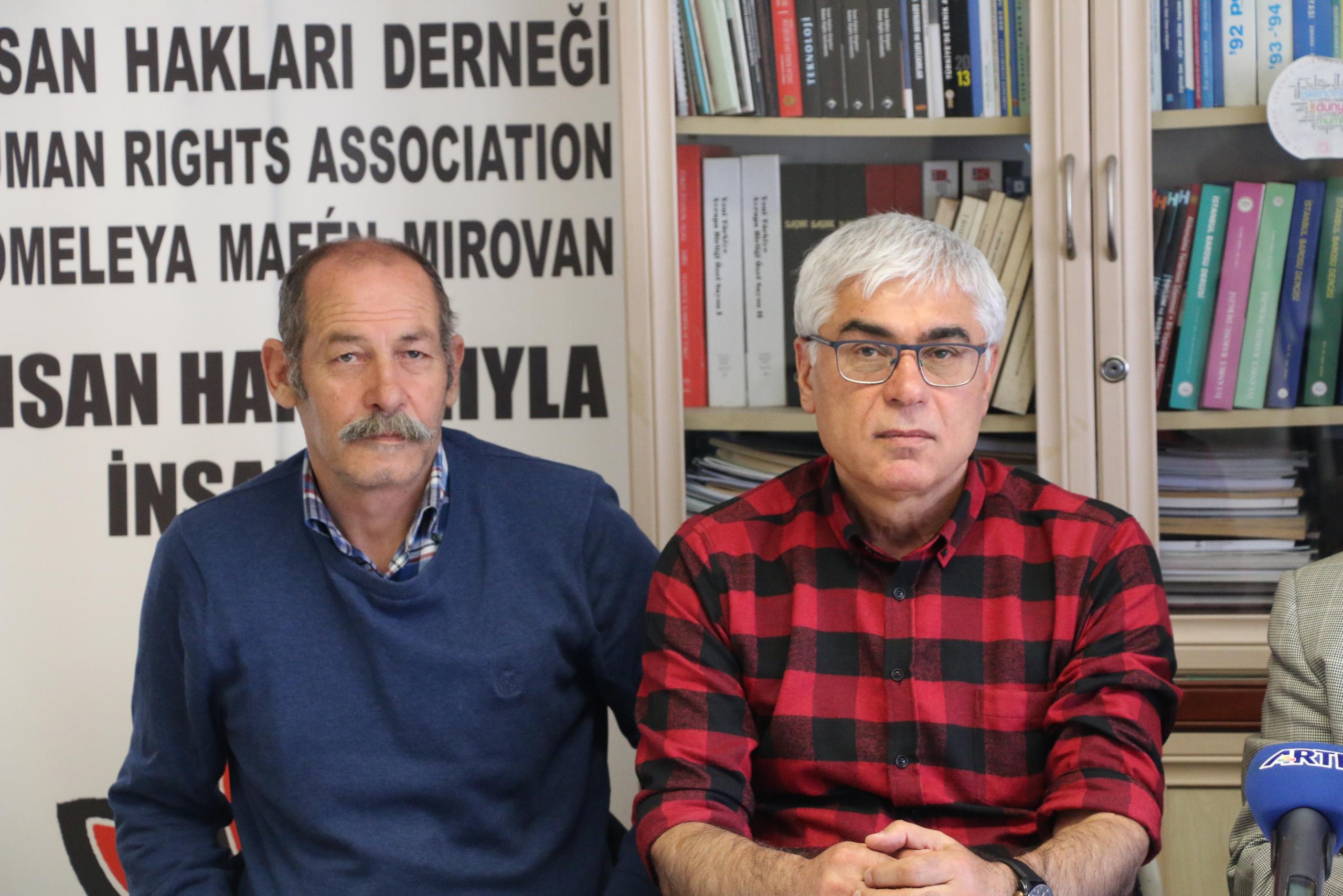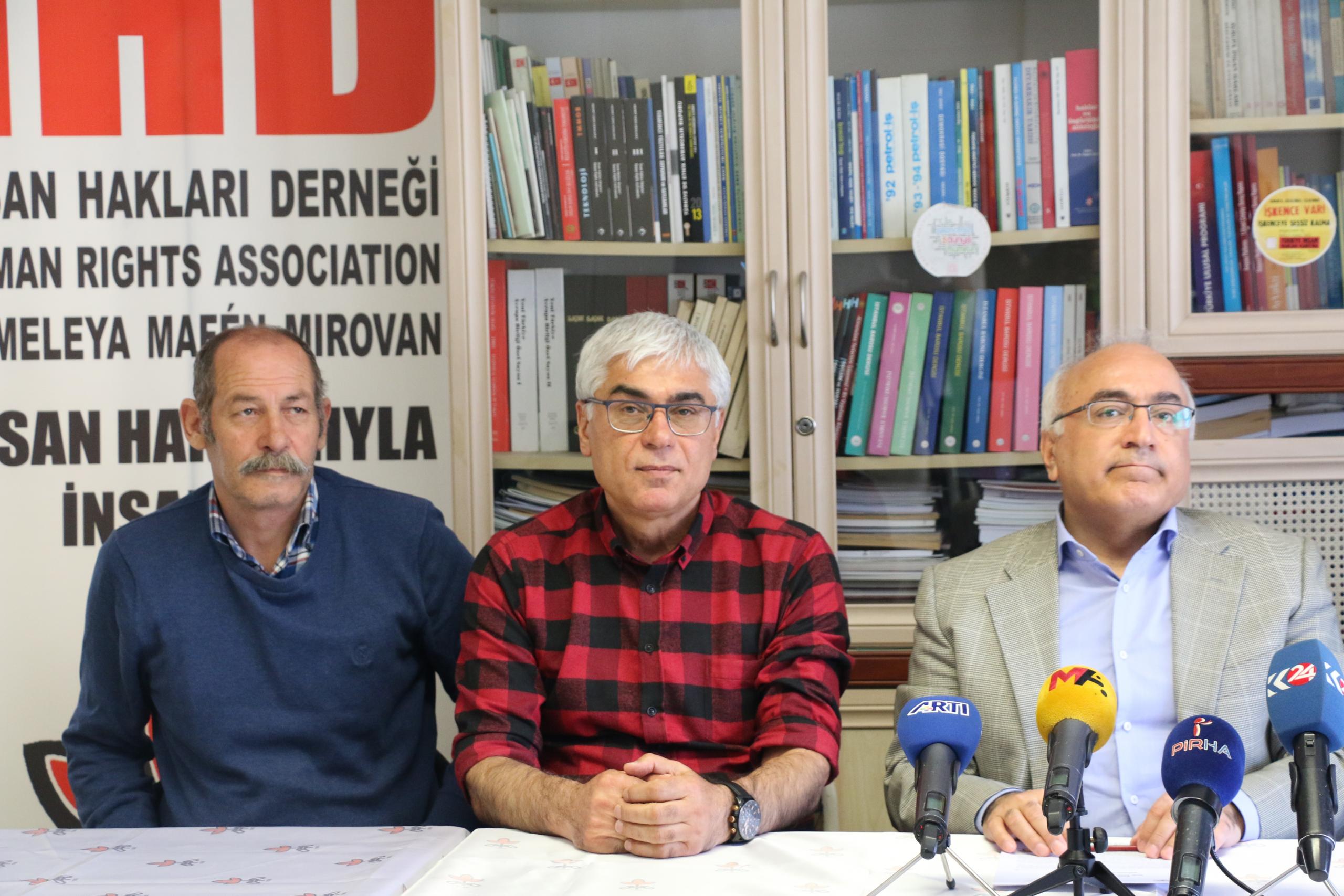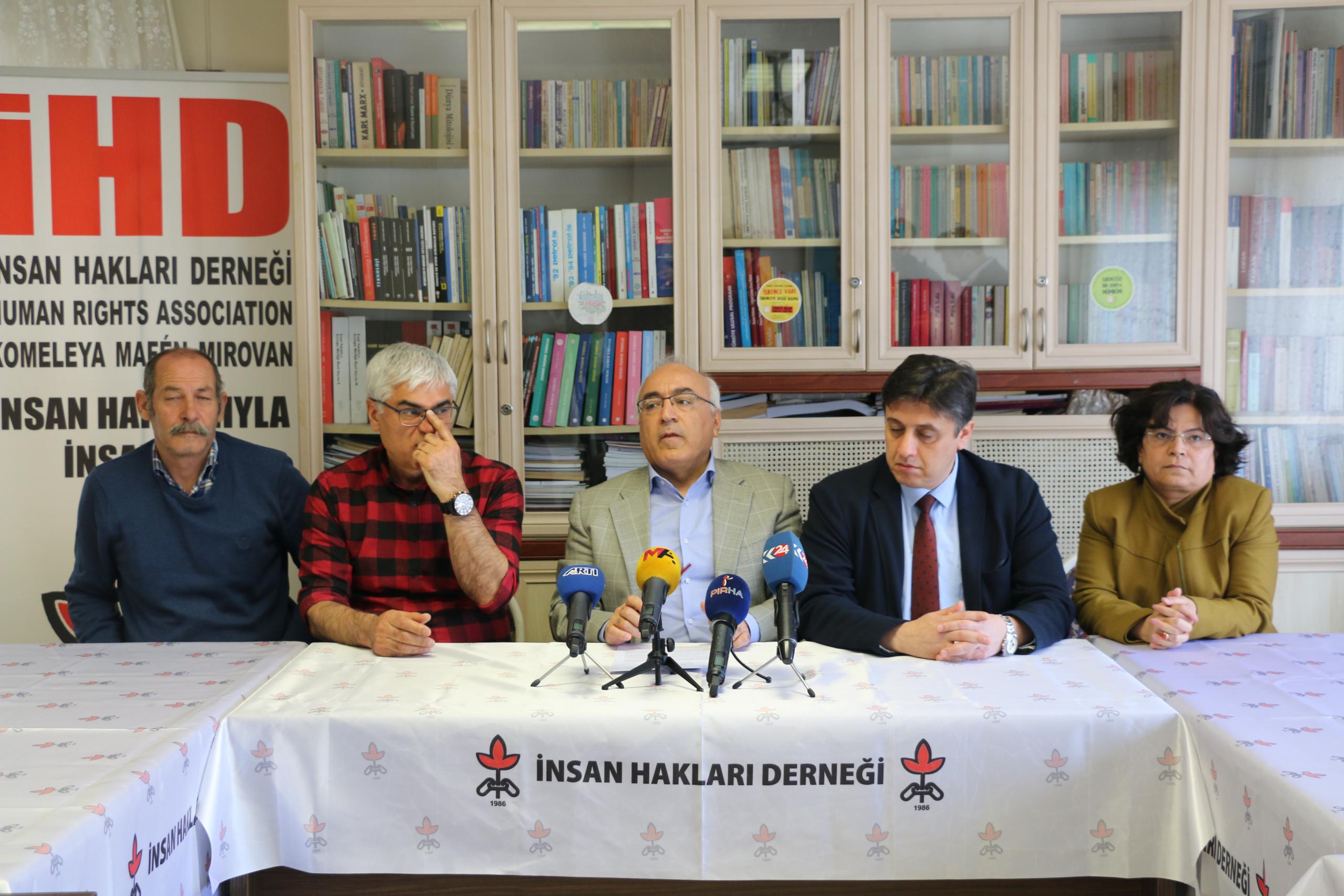 İHD Genel Eş Başkanı Öztürk Türkdoğan, “İstemediğimiz, karşı çıktığımız üzücü bir olay nedeni ile karşınızdayız. Maalesef Türkiye‘de başkentte başkentin göbeğinde insanlar kendilerini polis olarak tanıtan kişiler tarafından tehdit edilmeye, geçici süre alıkonularak zorla mülakat yaptırılmaya, maruz bırakılıyorlar. Özellikle son yıllarda OHAL ilanından sonra çok sık karşılaştığımız bir işkence yöntemi. Biz bu yöntemi işkence yöntemi olarak değerlendiriyoruz. Çünkü her türlü işkence ve kötü muamele, onur kırıcı davranış ve aynı zamanda tehdit suçu, aslında bir dizi suçun işlendiği bir olayla karşı karşıyayız” dedi.