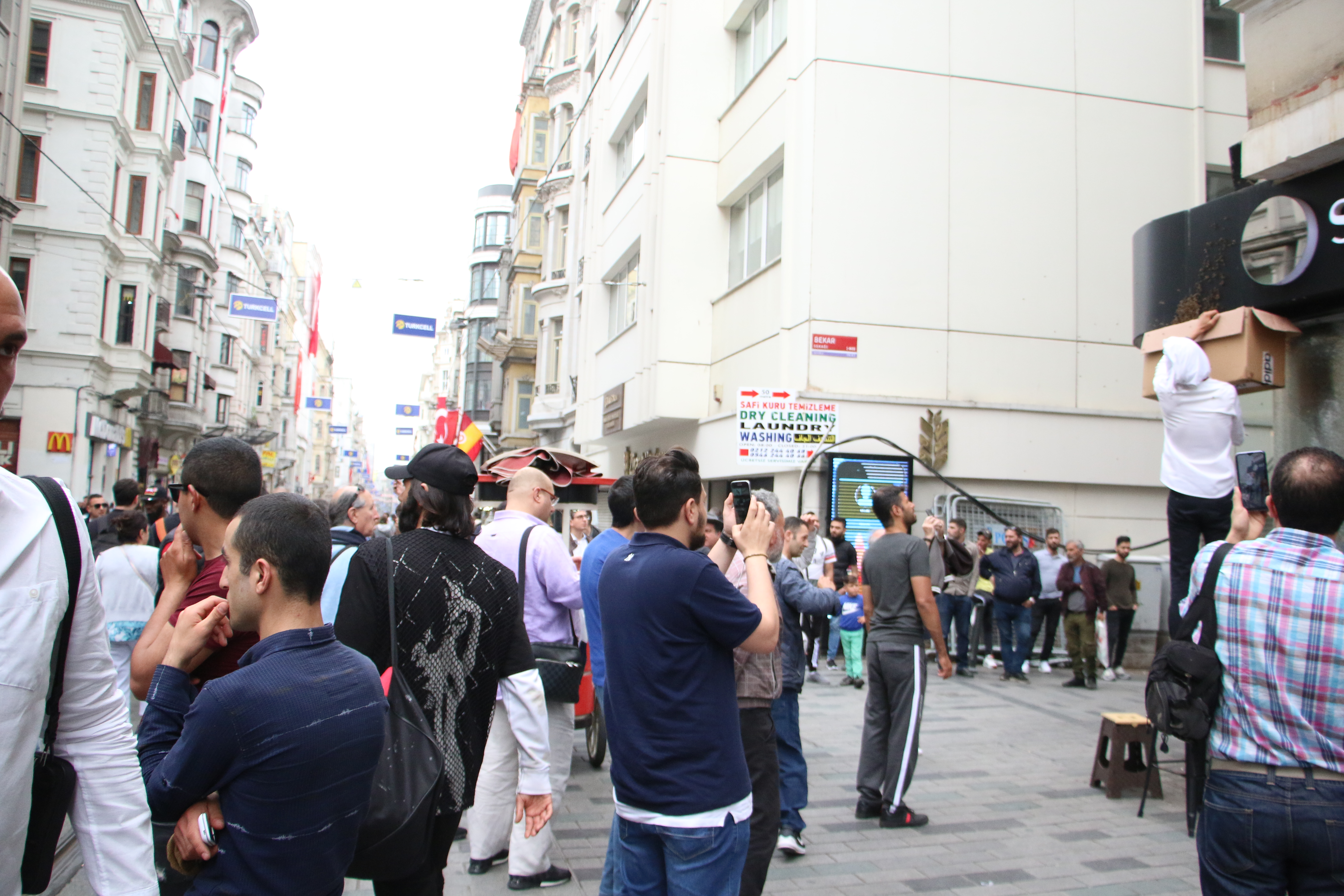 İstanbul Beyoğlu’nda bulunan İstiklal Caddesi’ne nereden geldiği bilinmeyen ve oğul veren bal arıları sardı. Bir giysi mağazasının tabelasına konan bal arıları çevreden geçenlerinin dikkatini çekti.