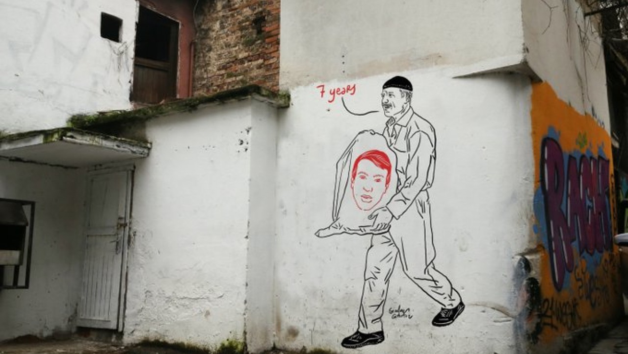 PİRHA- İtalyan karikatürist Gianluca Costantini, cenazesi torba içinde babasına teslim edilen Hakan Arslan’ı İstanbul sokaklarındaki bir duvara çizdi.
