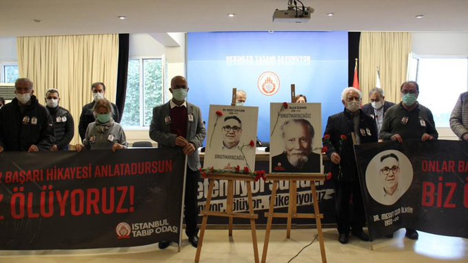 Pandemide yaşamını yitiren meslektaşları için saygı duruşunda bulunmak, Türkiye’de ve İstanbul’da kırmızı alarm durumuna geçen pandemi süreciyle ilgili tespit ve alınması gereken önlemleri paylaşmak üzere İstanbul Tabip Odası (İTO) Yönetim Kurulu’nca bir basın toplantısı gerçekleştirildi.