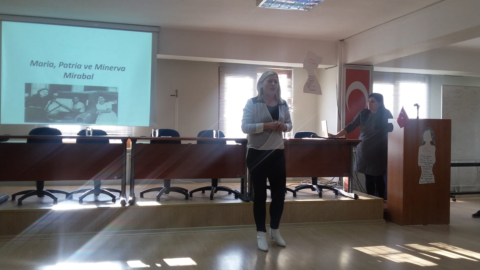 Katı’nın konuşmasının ardından sinevizyon gösterimi yapıldı. Ardından DİSK’ten Özgür Genç konuşma yaptı. Genç, 25 Kasım Kadına Karşı Şiddetle Mücadele Günü’nün nasıl ortaya çıktığını anlattı.