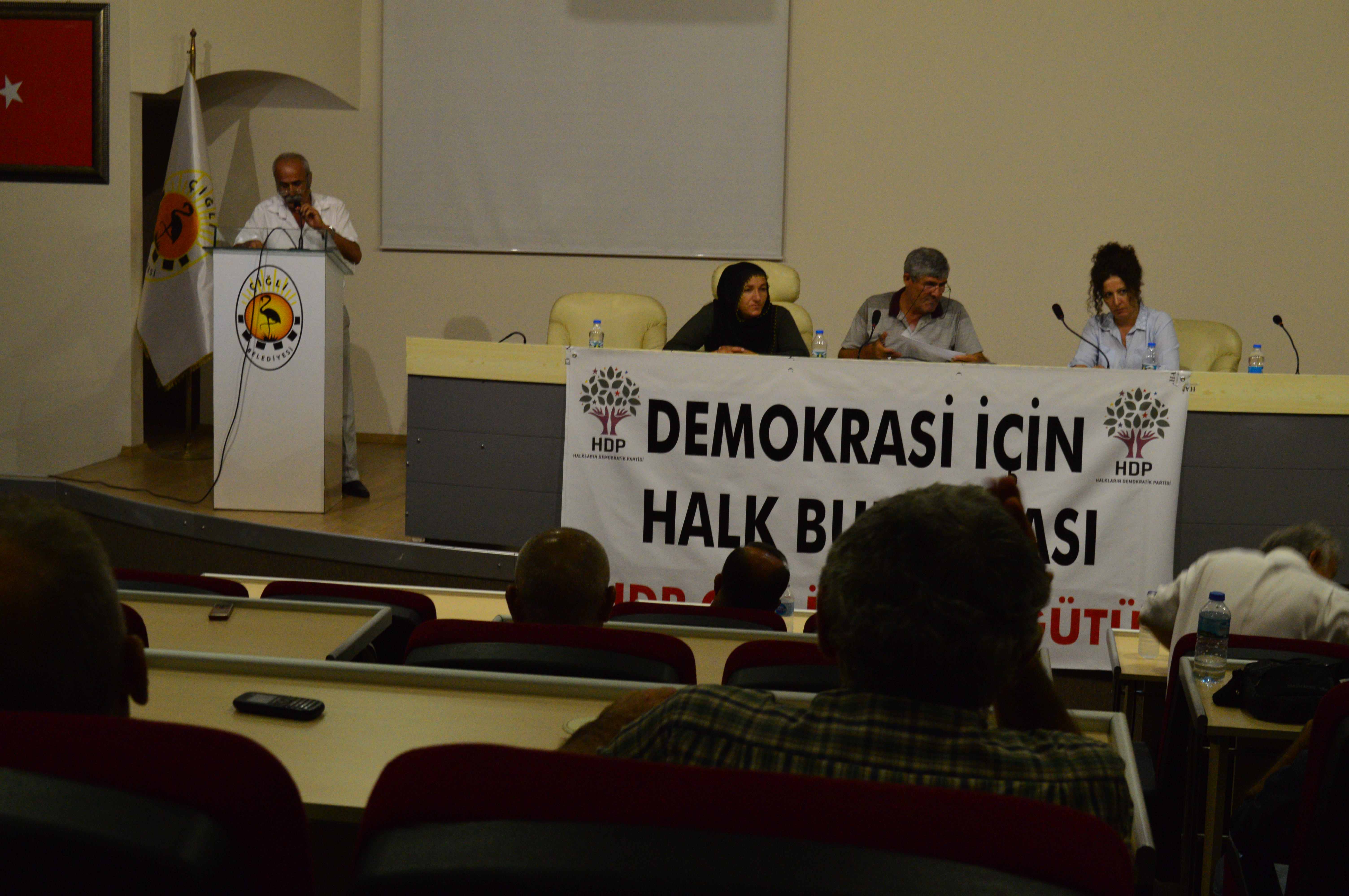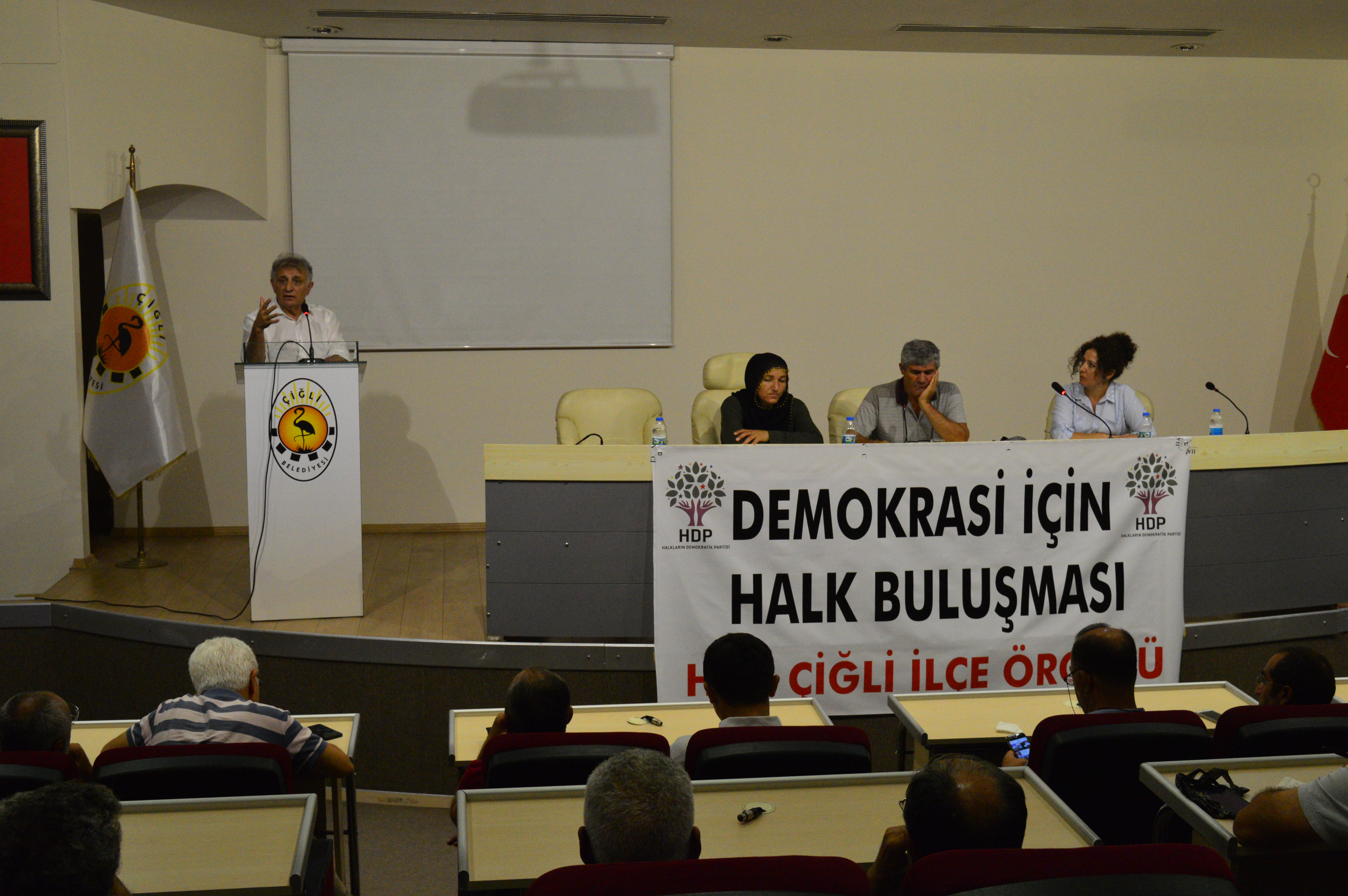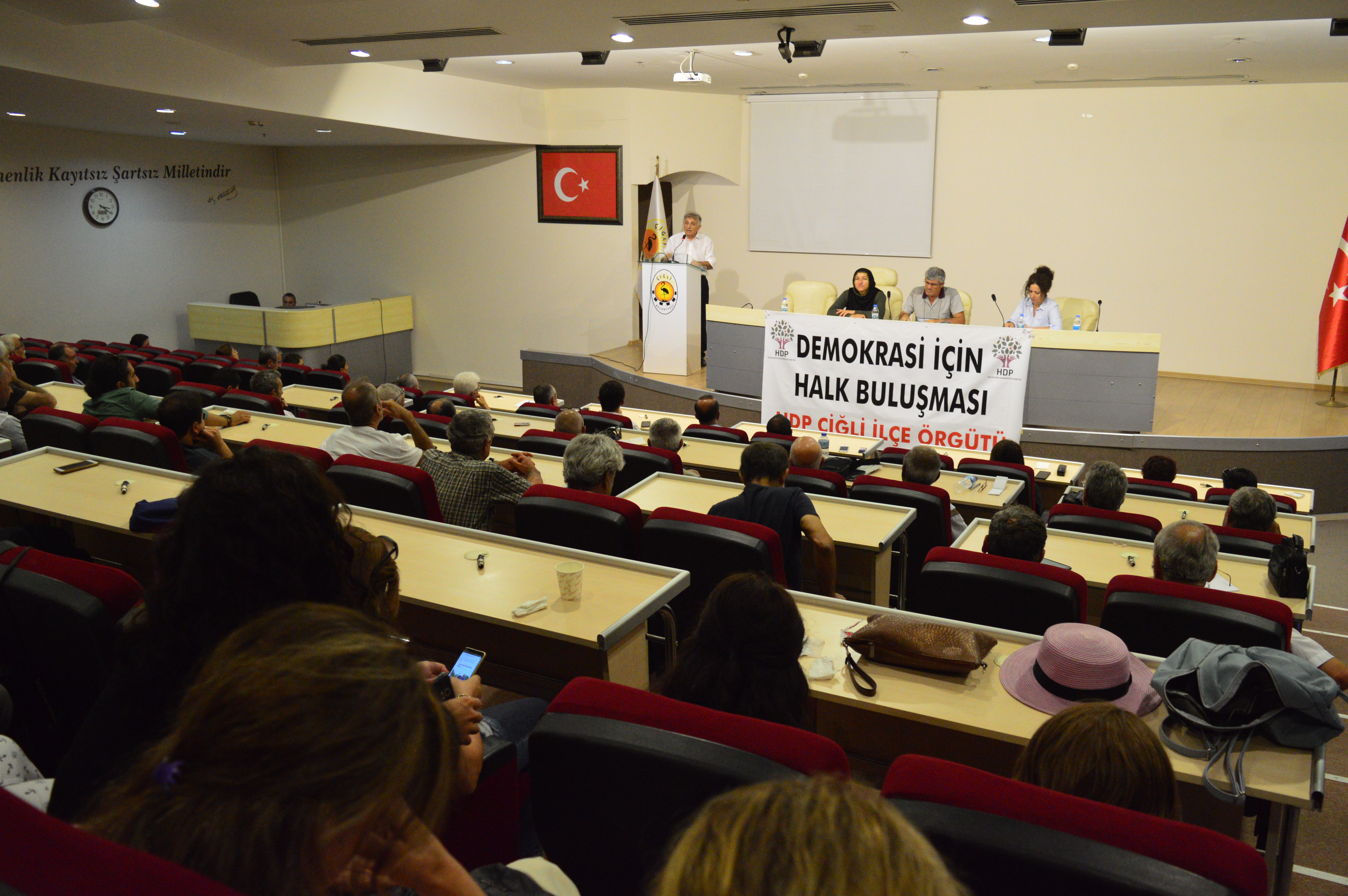 Halkların Demokratik Partisi (HDP), Çiğli Belediyesi Konferans Salonu’nda ‘Demokrasi için halk buluşması’ etkinliği gerçekleştirdi. HDP Milletvekilleri Serpil Kemalbay ve Erol Katırcıoğlu’nun katlımı ile gerçekleşen buluşmaya çok sayıda yurttaş da katıldı.
