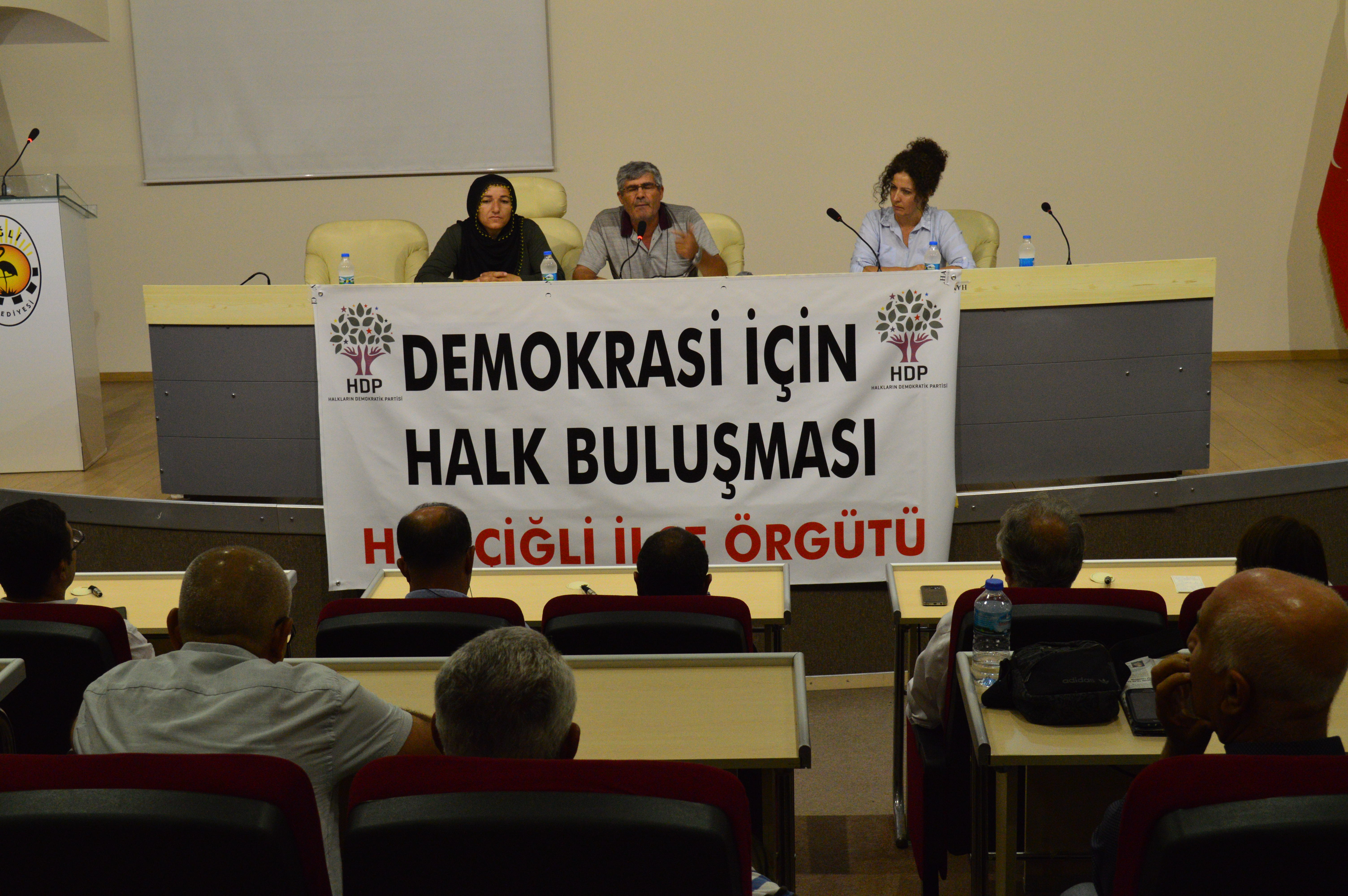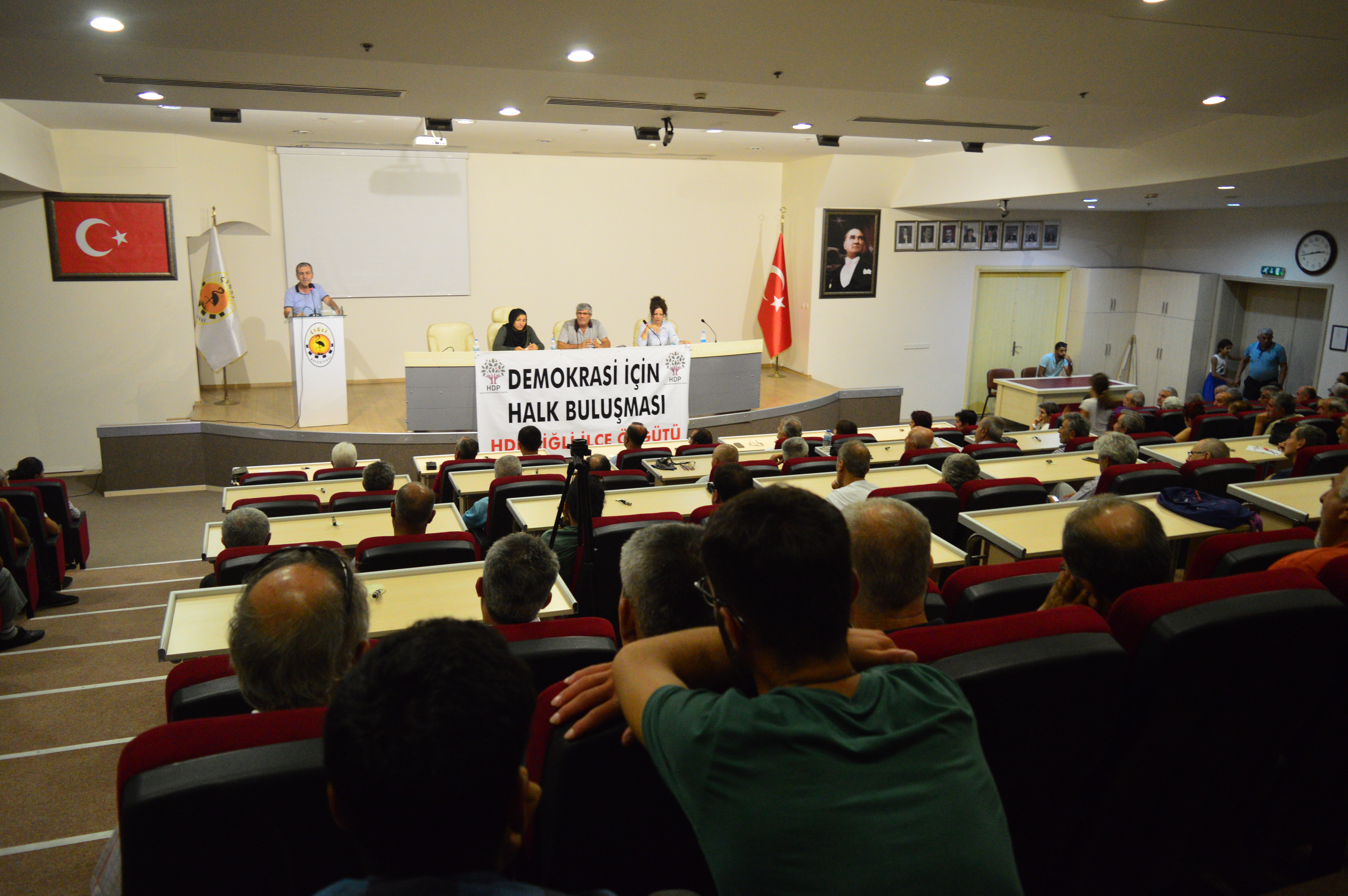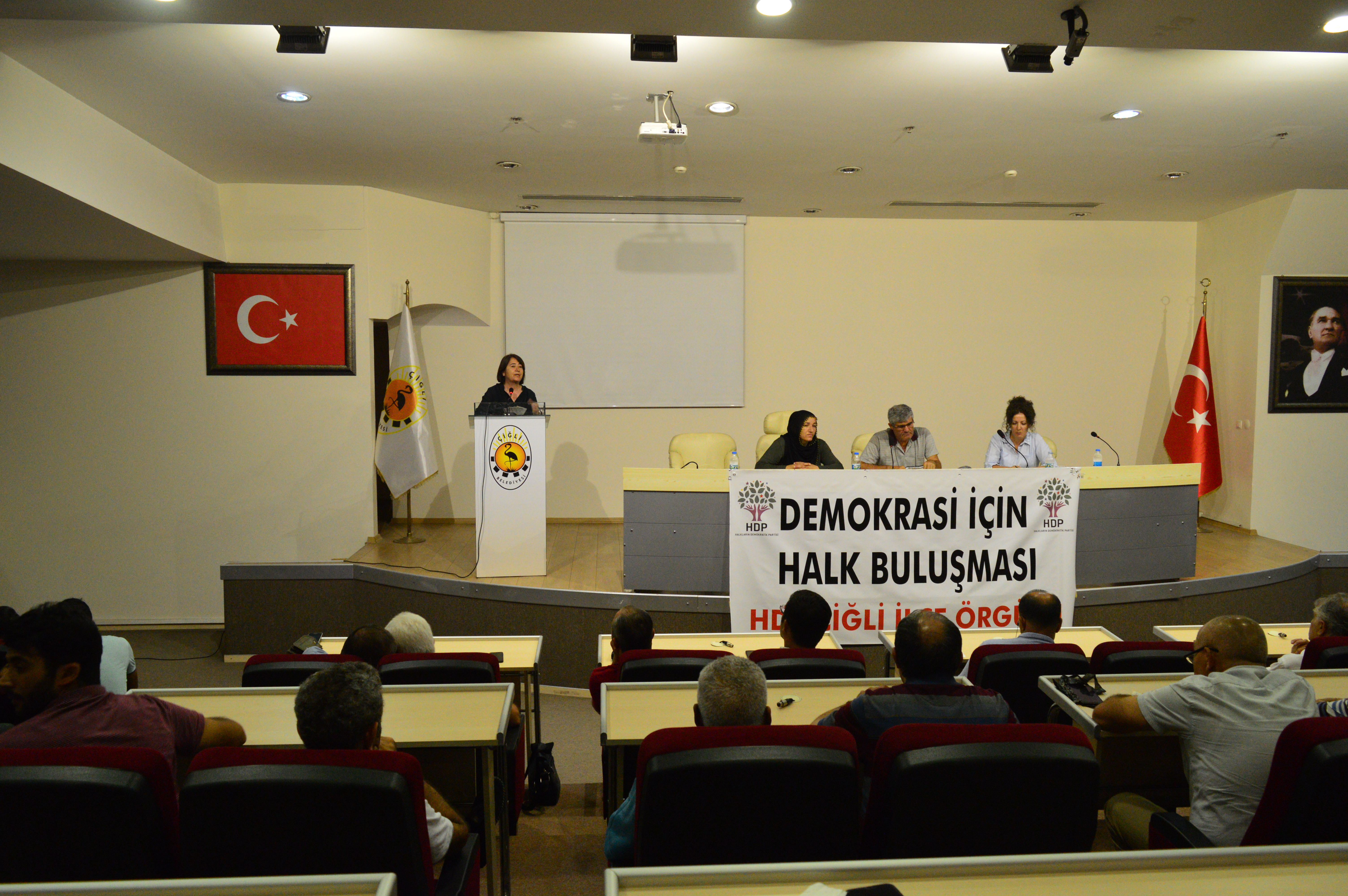 Halkların Demokratik Partisi (HDP), Çiğli Belediyesi Konferans Salonu’nda ‘Demokrasi için halk buluşması’ etkinliği gerçekleştirdi. HDP Milletvekilleri Serpil Kemalbay ve Erol Katırcıoğlu’nun katlımı ile gerçekleşen buluşmaya çok sayıda yurttaş da katıldı.