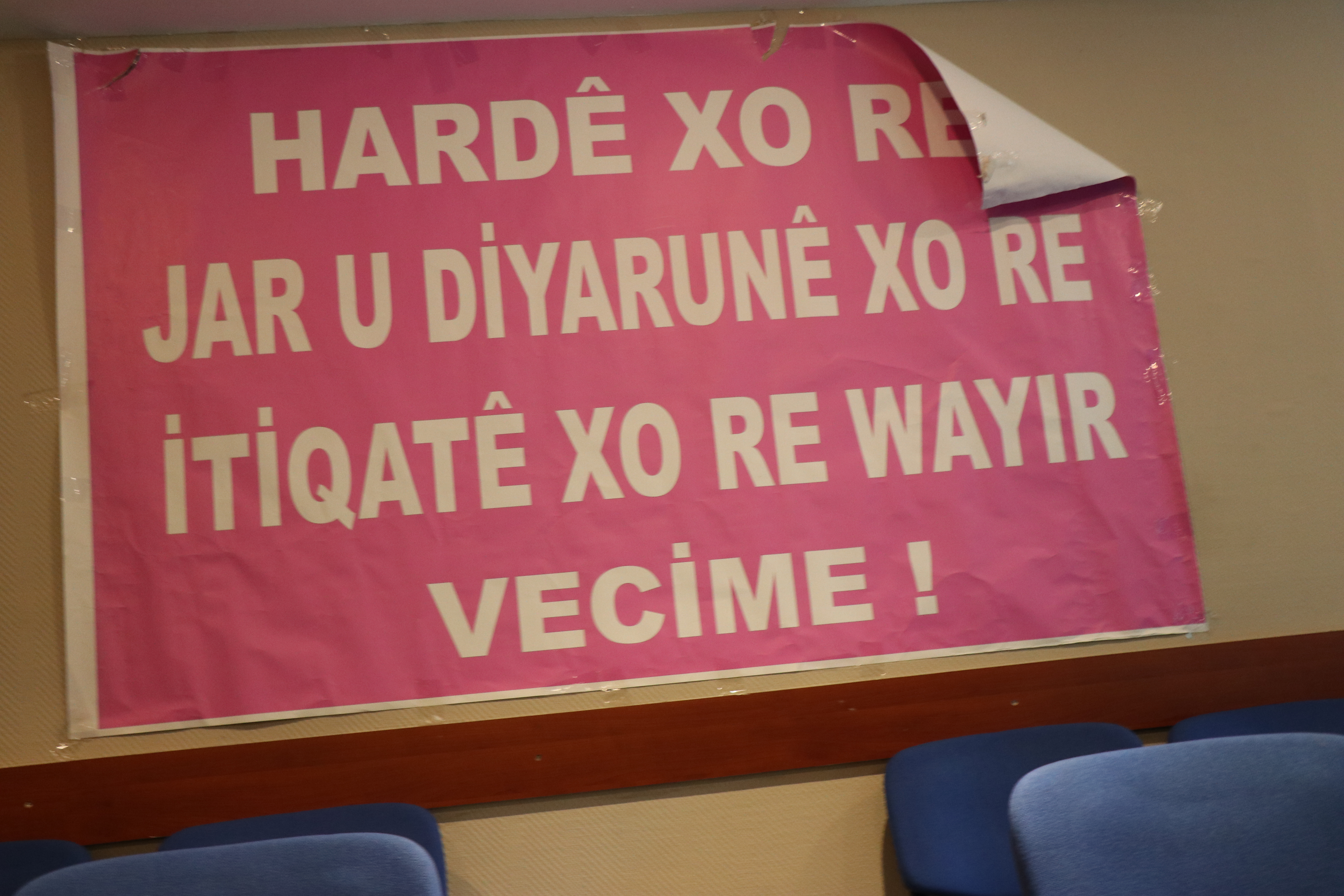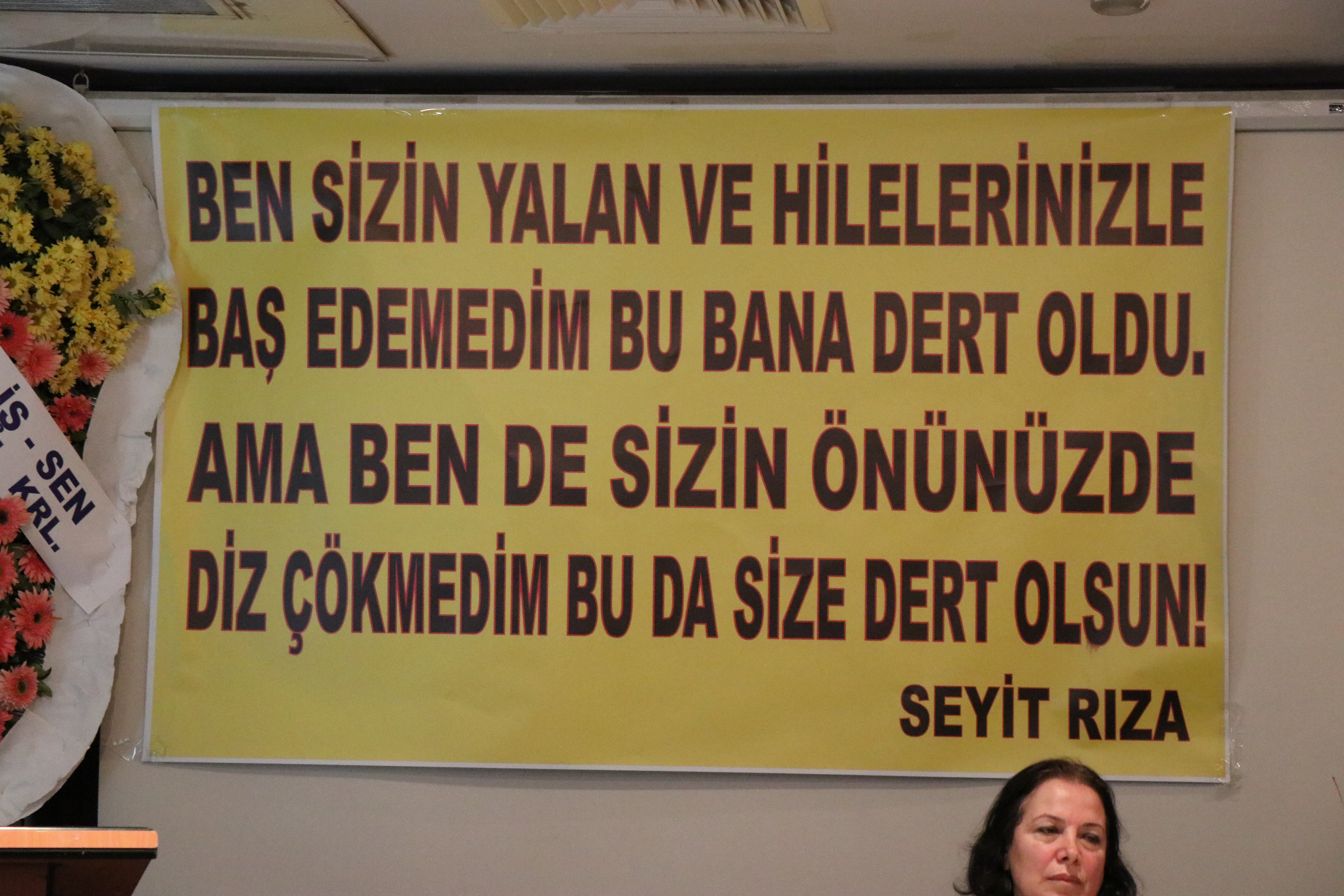 Kongrede Seyit Rıza’nın “Ben sizin yalan ve hilelerinizle baş edemedim, bu bana dert oldu, ama ben de sizin önünüzde diz çökmedim bu da size dert olsun” sözünün bulunduğu pankartın yanı sıra, “Munzur Özgür Akacak” ve Kırmancki pankartlar asıldı.