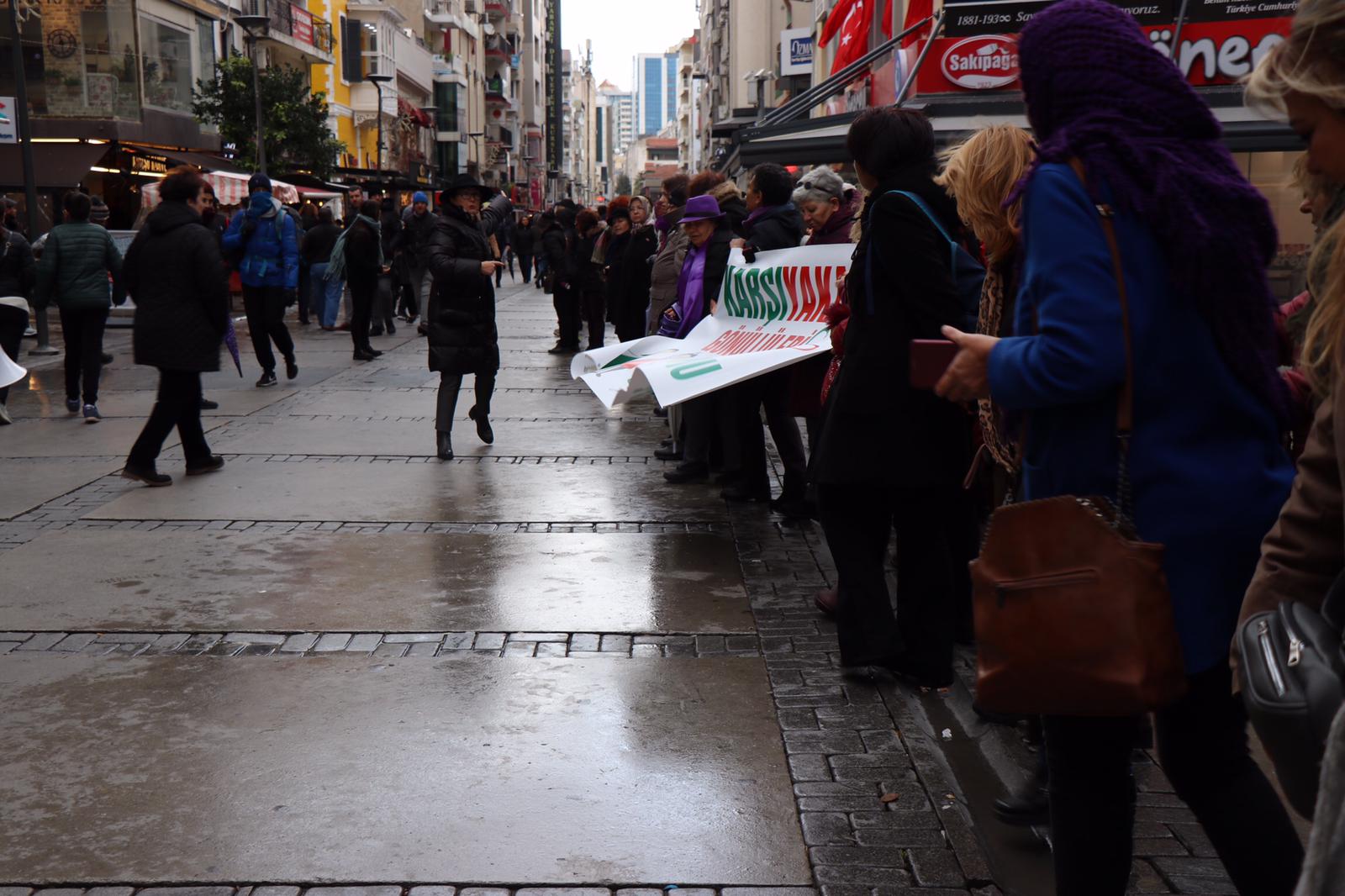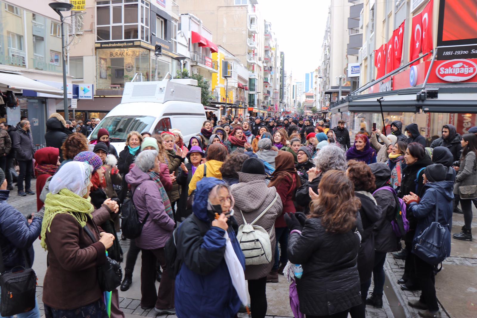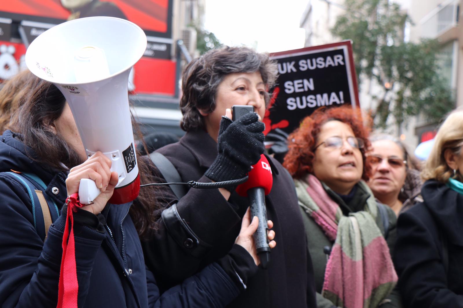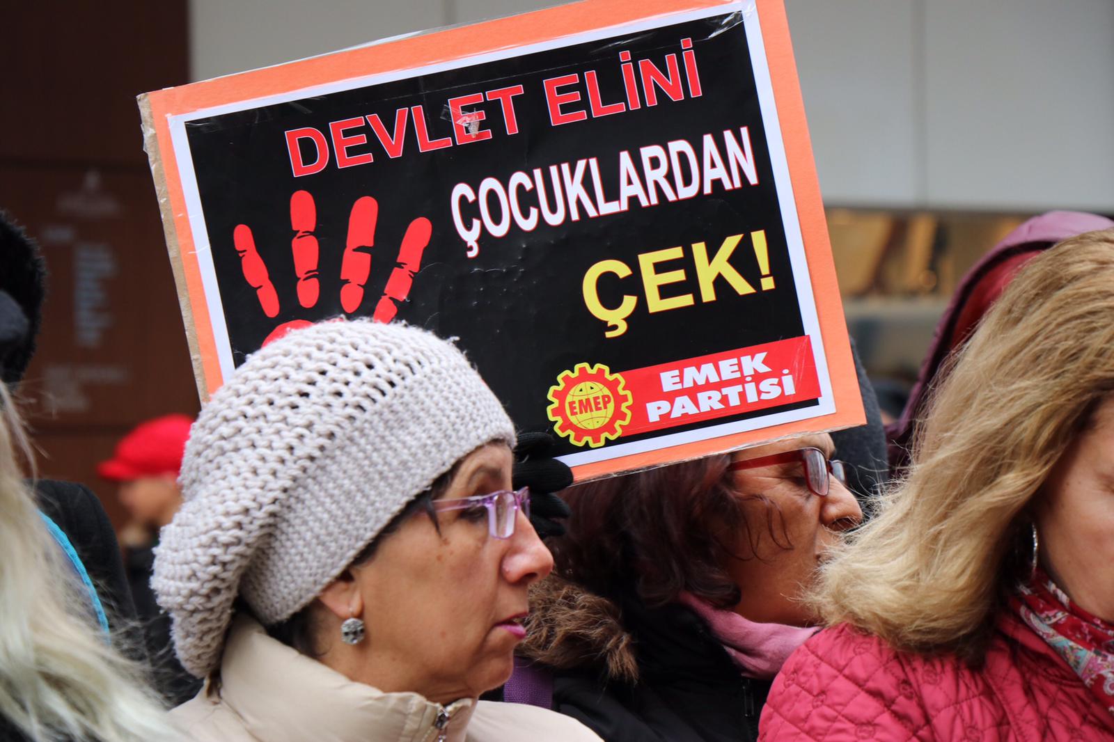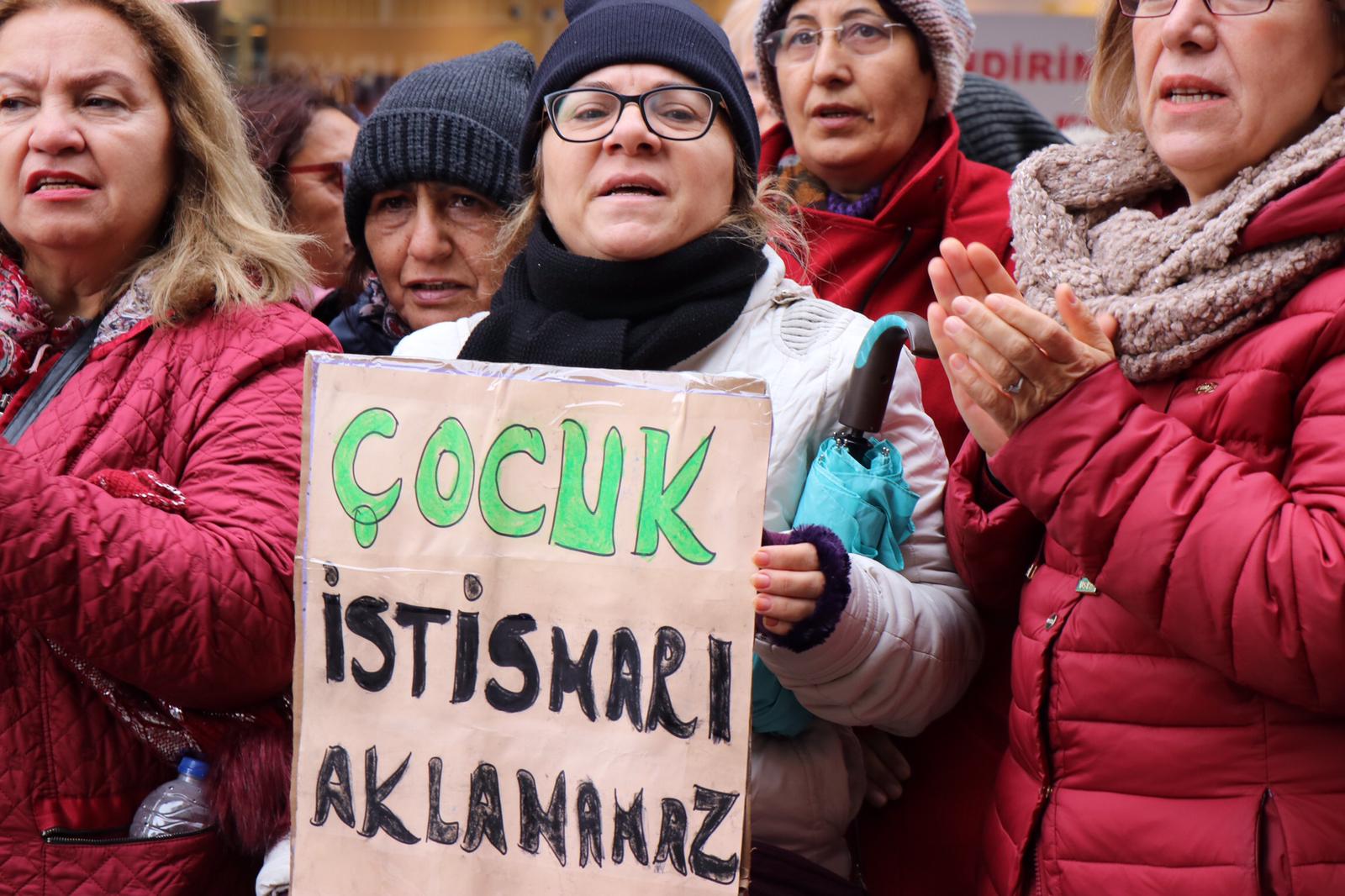 İzmir’de Kadın Platformu, çocuk istismarına karşı Alsancak Türkan Saylan Kültür Merkezi önünde basın açıklaması yaptı.
