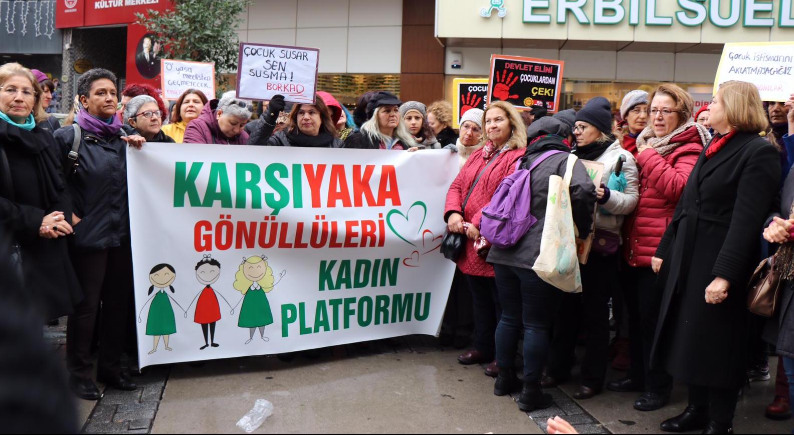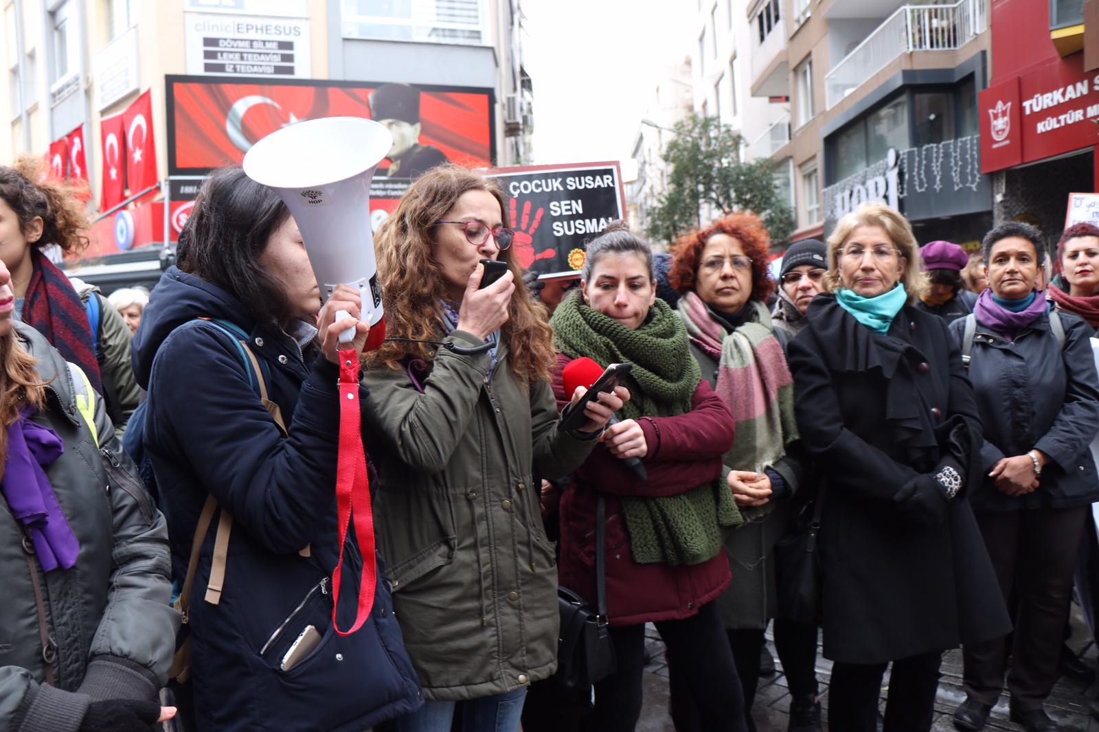 PİRHA- İzmir Kadın Platformu, çocuk istismarına karşı Alsancak Türkan Saylan Kültür Merkezi önünde basın açıklaması yaptı. Açıklamada, çocuk istismarının affının olamayacağı belirtildi.