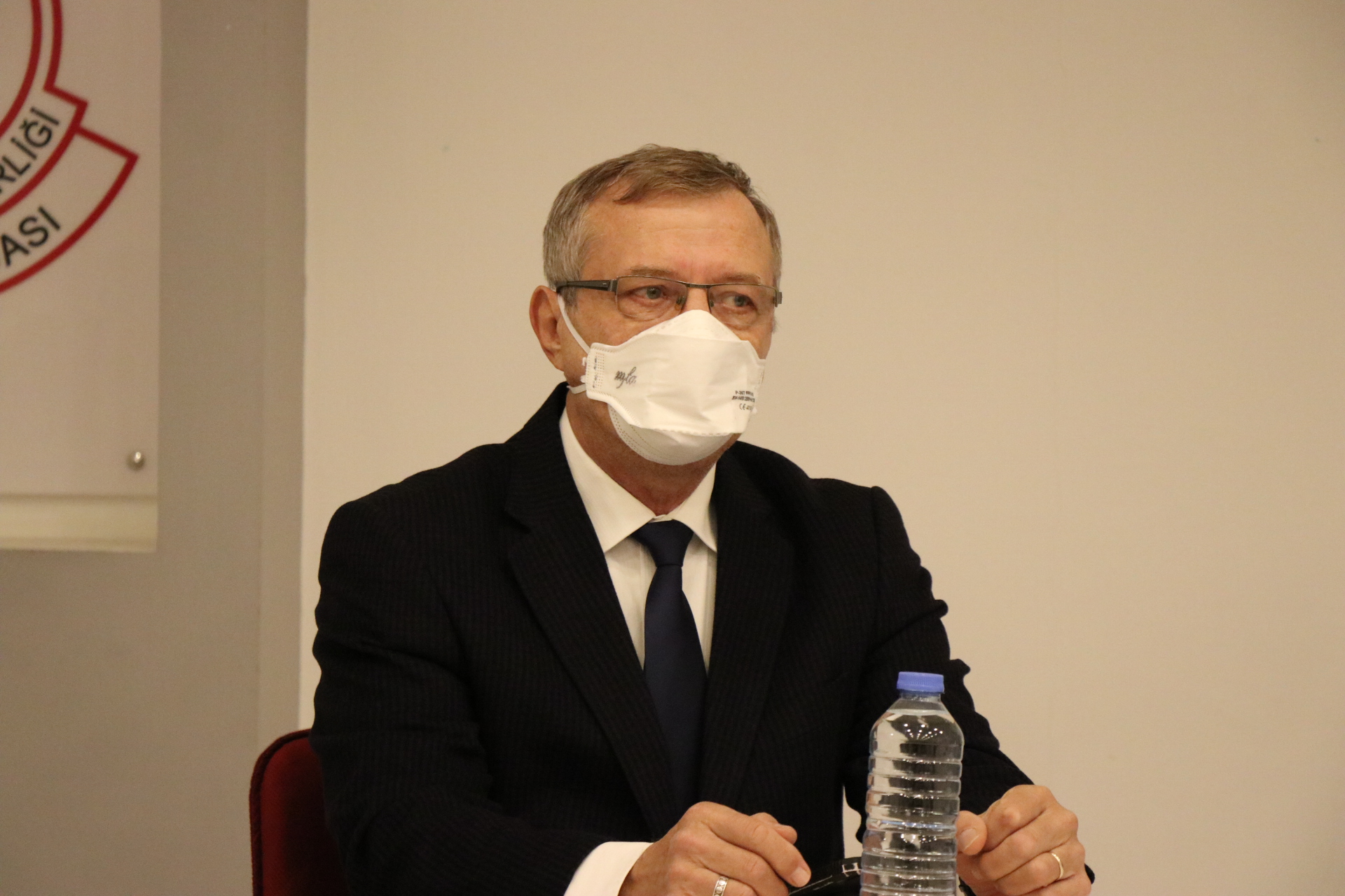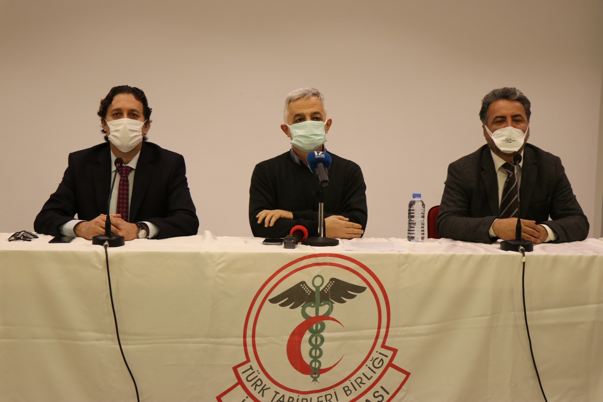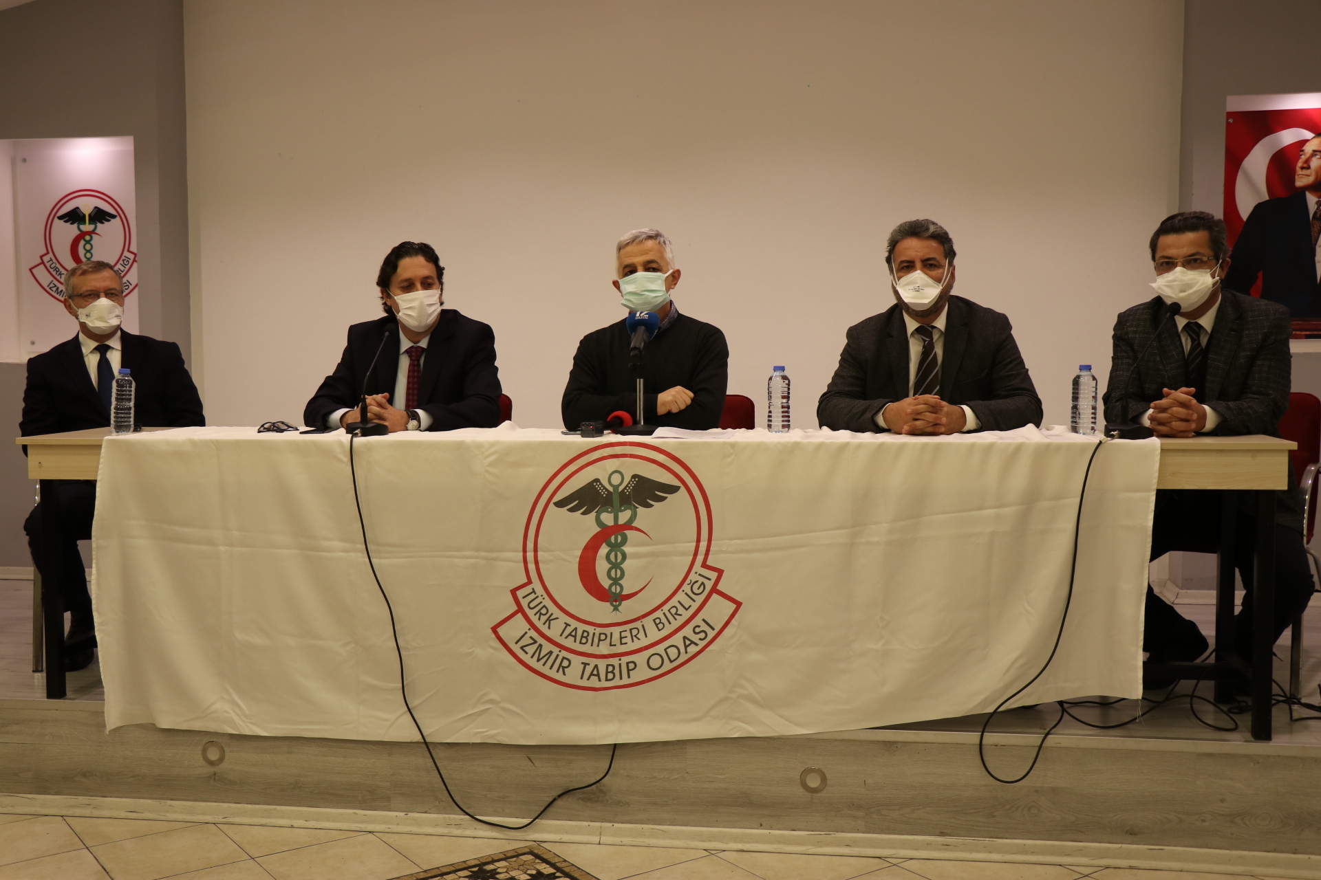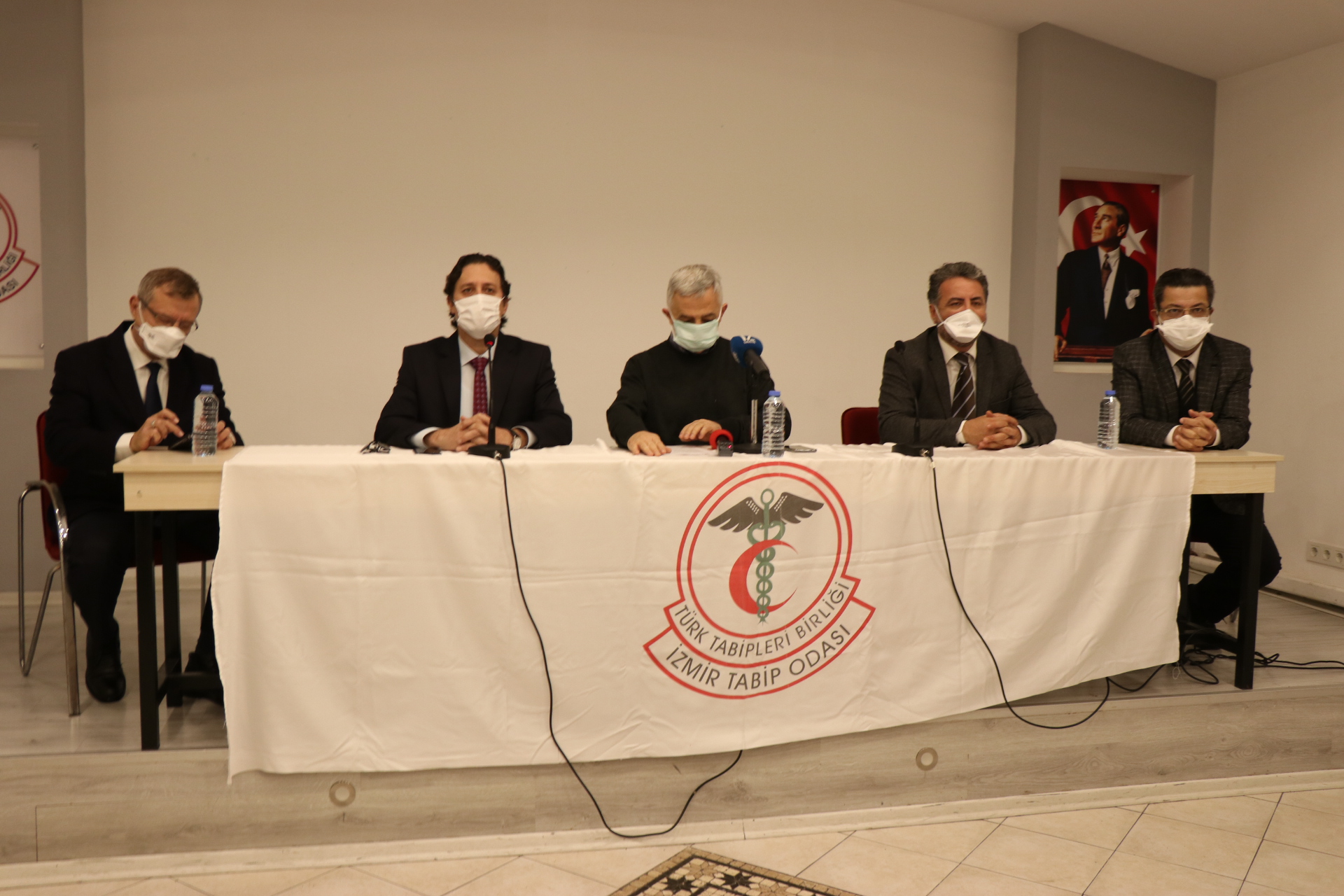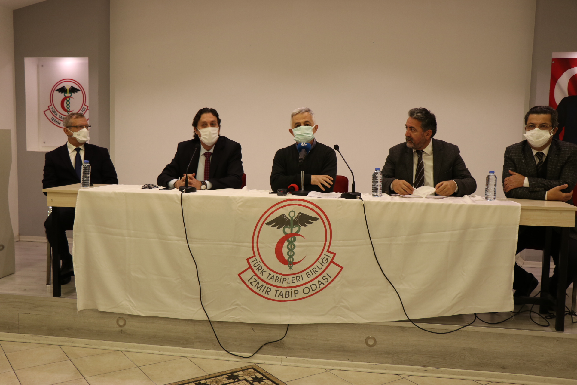İzmir Tabip Odası’nda düzenlenen toplantıda konuşan İzmir Tabip Odası Başkanı Lütfi Çam, pandemi koşullarında bulaş riskine rağmen gözaltı ve tutuklamaların yaşanmasının kabul edilemez olduğunu ifade etti.