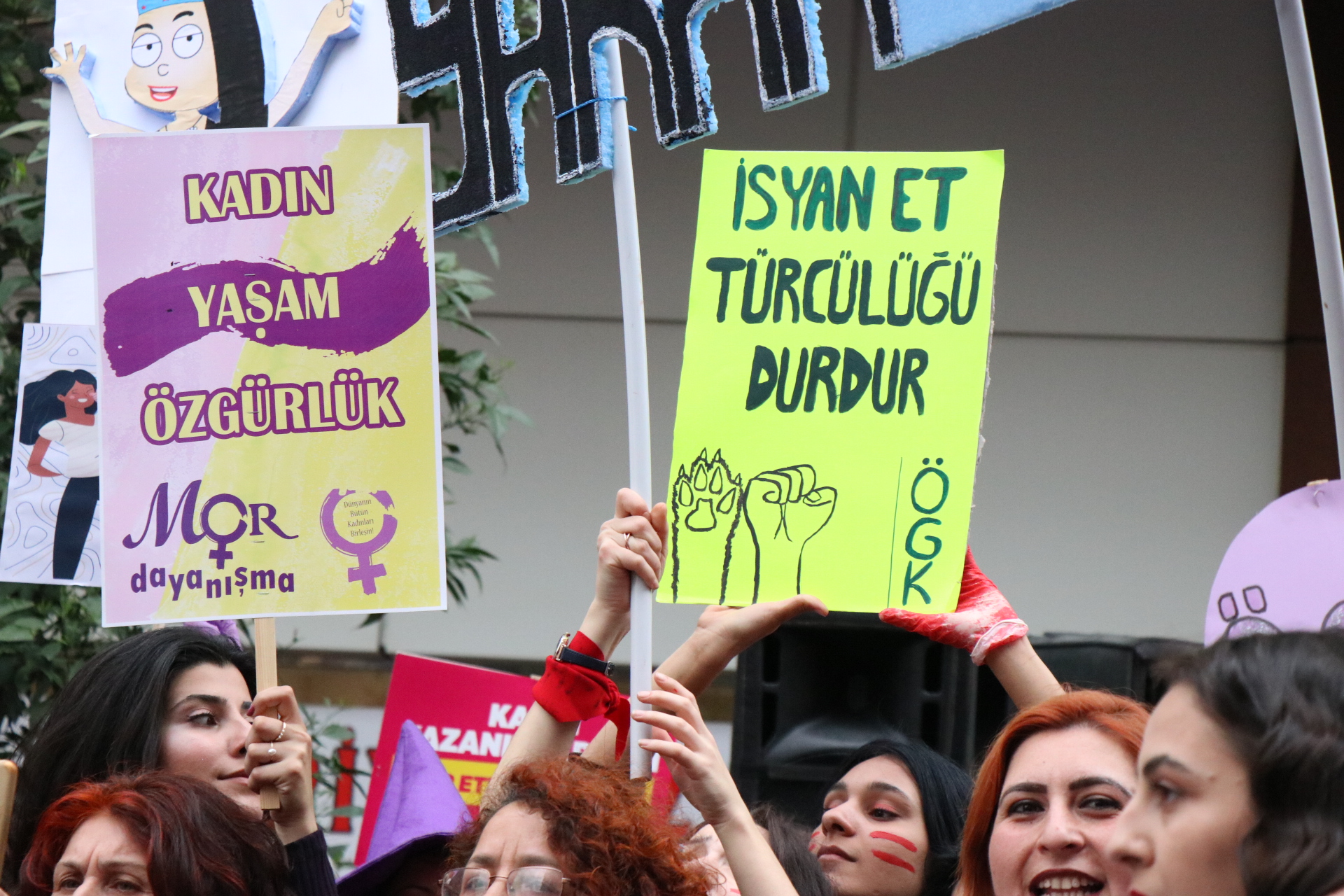 İşçi, emekçi, genç, yaşlı, Türk, Kürt, Ermeni, Suriyeli, göçmen, biseksüel, lezbiyen kadınlar ve transerkekler, nonbinaryler, queerler olarak gün geçtikçe daha fazla tedirgin olarak çıkıyoruz sokağa; sokaklar bizler için giderek daha güvensiz hale geliyor. Milyonlarcamız ev içinde yaşadığı şiddetle baş başa; başvuracağımız devlet mekanizmaları çalışmıyor, şiddetten kurtularak yeni bir yaşam kurma olanakları gün geçtikçe daha da daraltılıyor çünkü.”