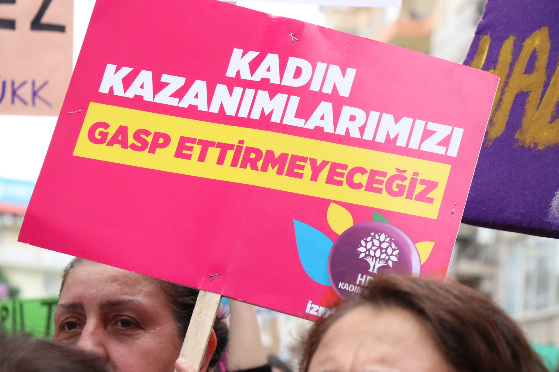 “Kadına yönelik şiddet daha da artırıyor. Her ay onlarca kadın katlediliyor, yüzlercesi şiddet görüyor, tecavüze uğruyor. Kadına yönelik şiddeti önlemek bir yana, daha da katmerlendirecek yargı ve meclis kararlarına imza atılıyor. Mücadeleyle kazanılmış ve yasalarla garanti altına alınmış haklarımıza göz dikiliyor, uluslararası sözleşmeler ve yasalar kaldırılmak isteniyor.