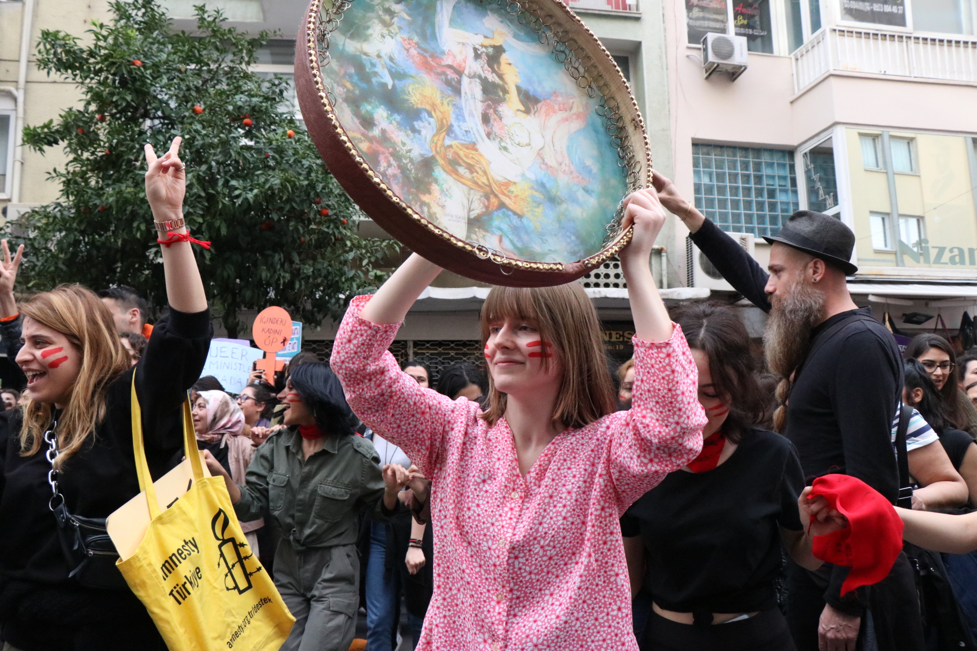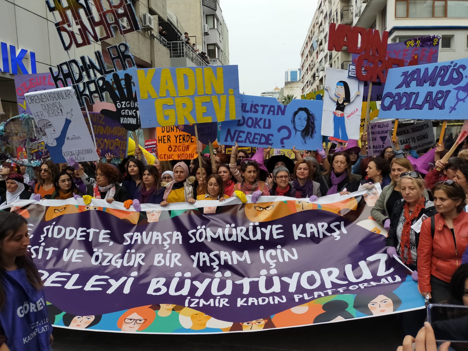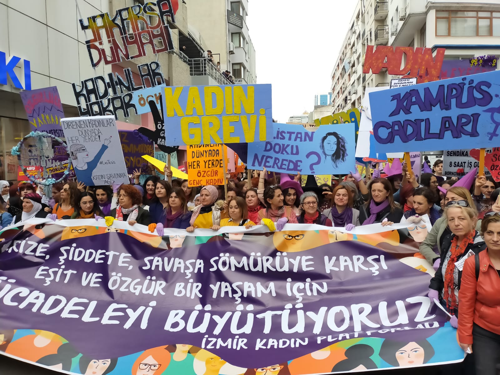 Biz Gaziemir serbest bölgede sendikalaştığı için işten atılan Sf Trade işçileriyiz; sendikal hakları için direnen Bergama Belediyesi işçileriyizbiz daha iyi koşullarda çalışmak ve yaşamak isteyen, atölyelerde, fabrikalarda, hastanelerde, okullarda, tarlalarda olan kadınlarız, biz ölmek istemiyoruz diyen Emine Bulut’uz; biz halkların kardeşliği diyen, barışta ısrar eden kadınlarız; biz ötekileştirilmeye, yok sayılmaya karşı mücadele eden lezbiyen, biseksüel, translarız.