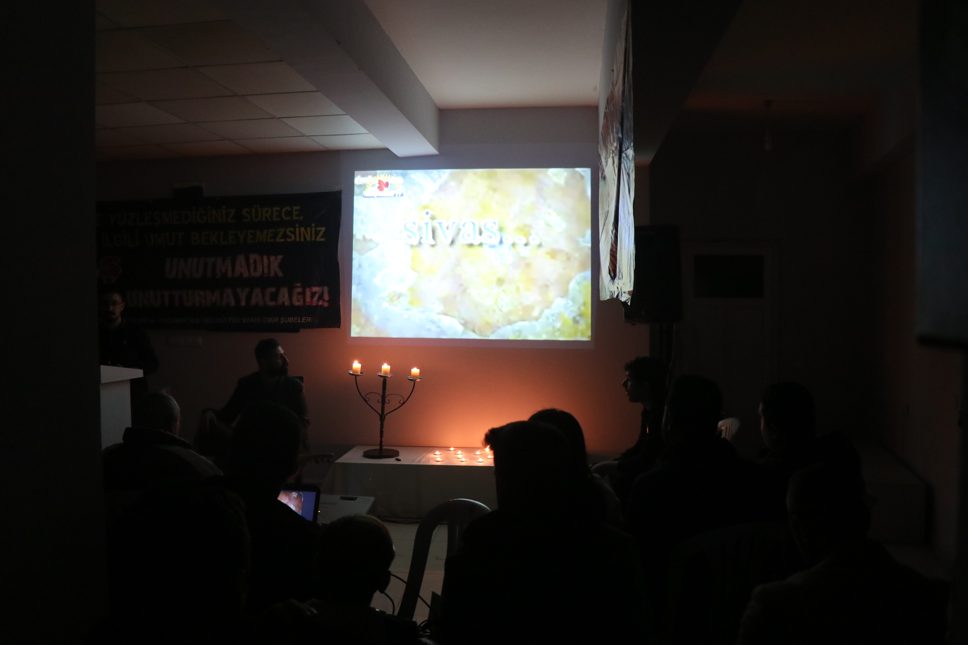 Çok sayıda yurttaşın katıldığı anmada katledilenler anısına şiir dinletisi sunuldu. Anmaya konuşmacı olarak katılan Maraş Katliamı tanığı Sait Sağmak, “Maraş Katliamı’nın hesabını sorsaydık bunlar Sivas Katliamı’nı yapmaya cesaret edemezlerdi. Devleti bu katliamlarla yüzleştireceğiz” dedi.