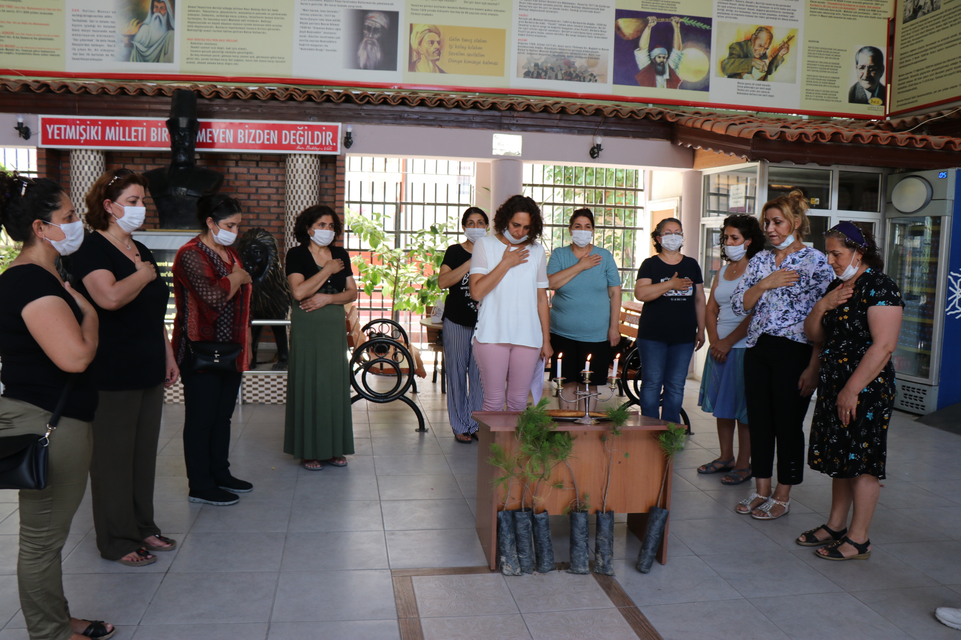 İzmir Yamanlar Cemevinde bir araya gelen Alevi kadınlar, katliamda hayatını kaybedenleri anarak çerağ uyandırdı, deyişler ve ağıtlarla fidan dikti.