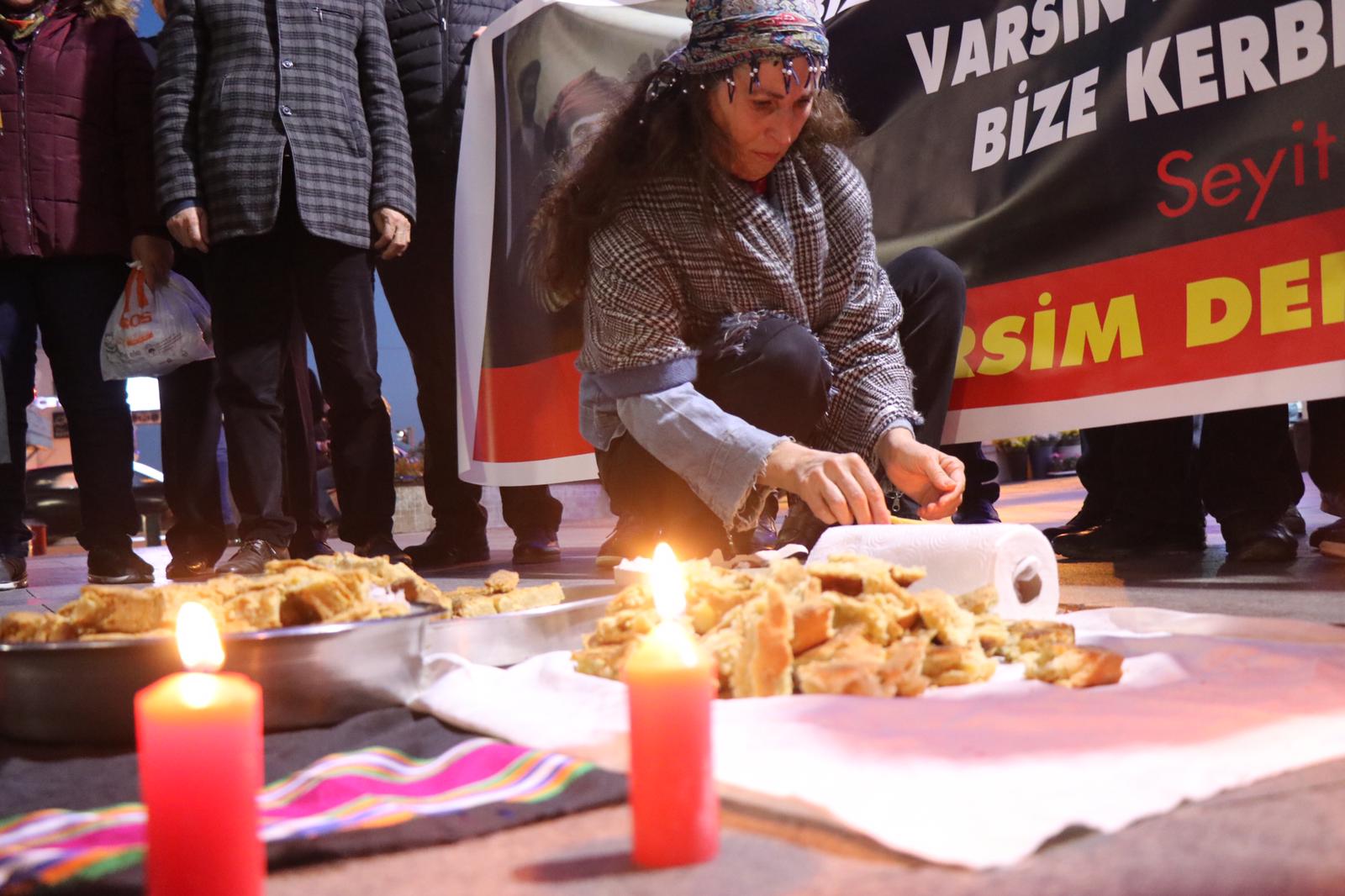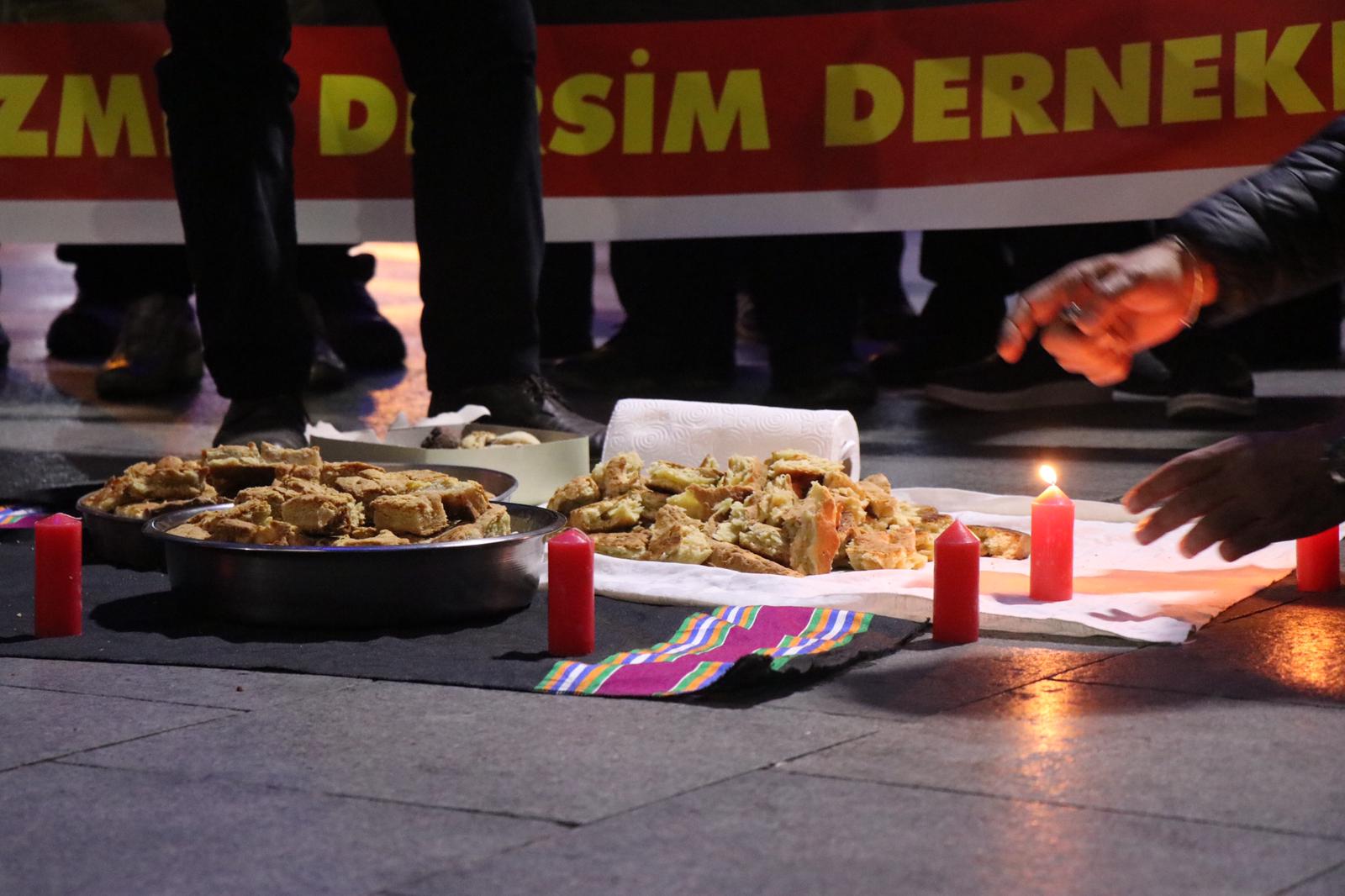 Tüm kurumlar adına açıklamayı okuyan DAD İzmir Eş başkanı Hüseyin Ozan, katliam ile yüzleşilmesi, Seyit Rıza ve yoldaşlarının cenazelerinin teslim edilerek nakline engel olunmaması, kayıp çocukların akıbetinin açıklanması, toplumsal kimliklerinin tanınarak asimilasyona ve şiddete son verilmesi taleplerini yineledi.