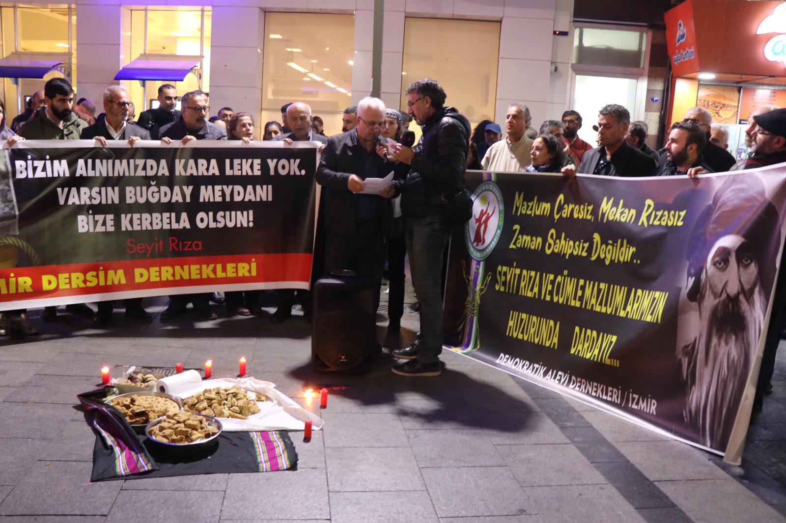 İdam edilişinin 81. yılında Seyit Rıza ve yoldaşları Demokratik Alevi Dernekleri İzmir Şubesi ve İzmir Dersim Kültür ve Dayanışma Derneği öncülüğünde Karşıyaka İskelesi’nde anıldı. Anmada mumlar yakılarak niyaz ve lokmalar dağıtıldı. HDP, SMF, Partizan ve Alevi kurumlarının yanı sıra çok sayıda yurttaşın katıldığı anmada kitle adına açıklamayı Demokratik Alevi Dernekleri İzmir Eş başkanı Hüseyin Ozan okudu.