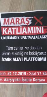 Öte yandan 2. Bölgede ise İzmir Alevi Platformu, 24 Aralık Salı günü saat:17.30’da Karşıyaka iskelesi karşısında anma yapılacak.