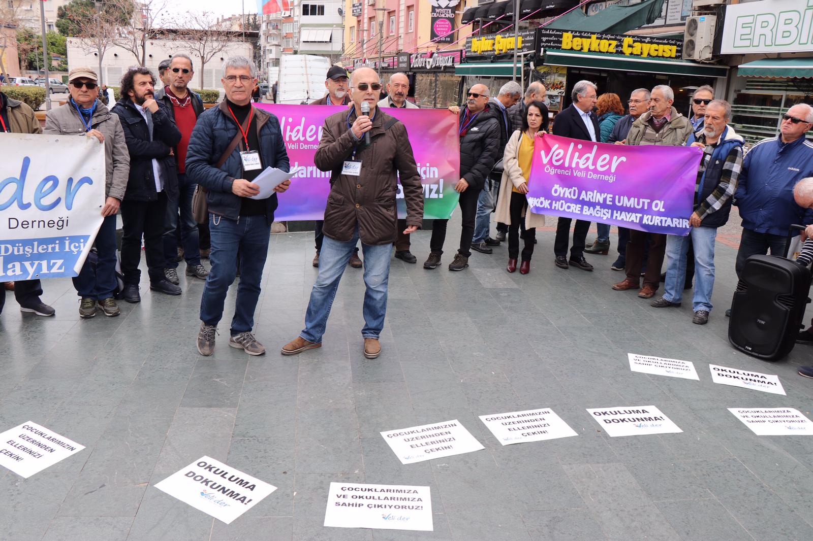 Açıklamayı Öğrenci Veli Derneği Karşıyaka Şube Başkanı Turgut Aydın okudu. Açıklamada şu ifadelere yer verildi: