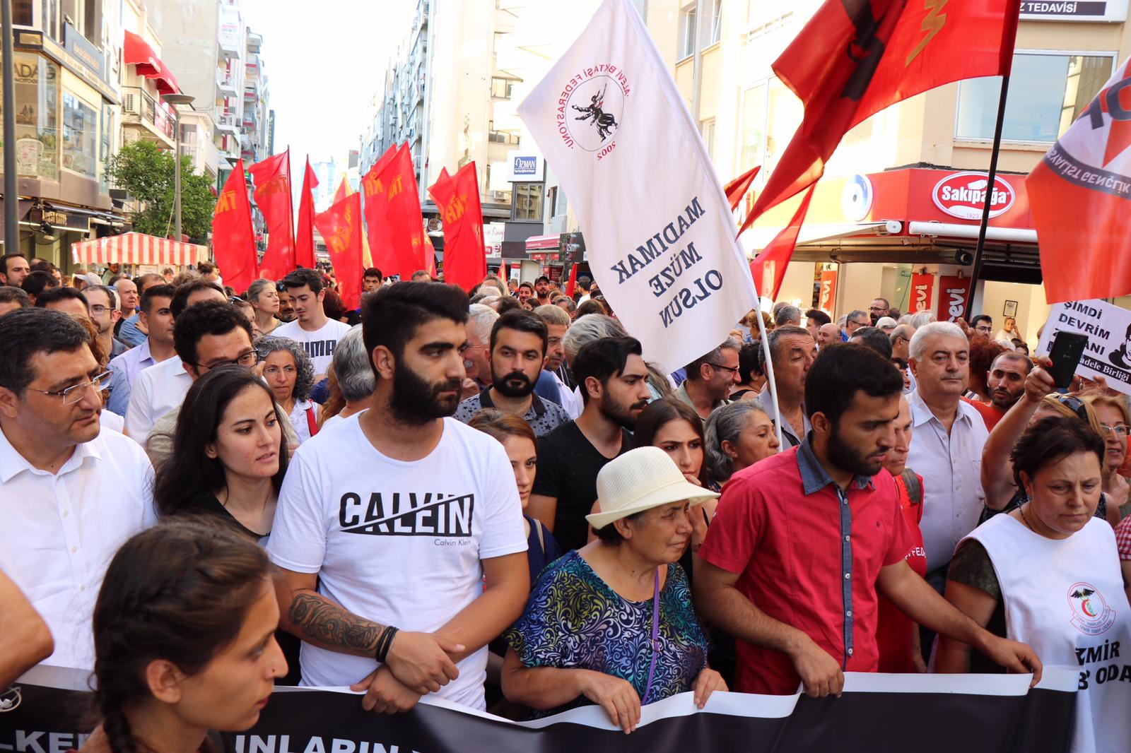 PİRHA -İzmir’de Alevi kurumları öncülüğünde sivil toplum kuruluşları ve siyasi partiler, Sivas’ta 26 yıl önce katledilen canları anarak katliamı lanetlediler.