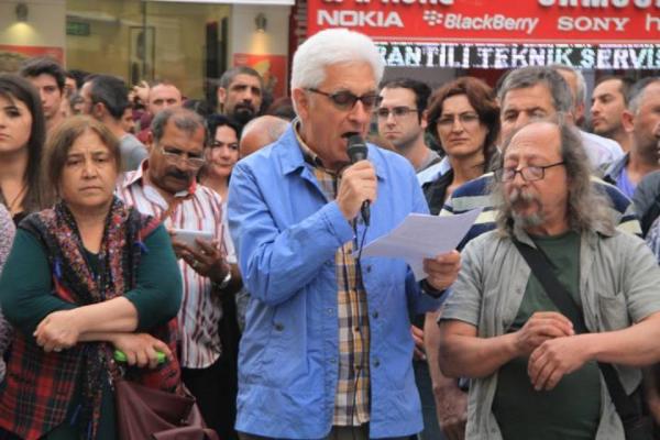 İzmir’de ÖHP, ÇHD, İHD, TİHV ve Halkların Köprüsü Derneği, Kanun Hükmünde Kararnameler (KHK) ile işten çıkarılan ve 72 gündür açlık grevinde olan Nuriye Gülmen ve Semih Özakça’nın durumuna dikkat çekmek için Alsancak Türkan Saylan Kültür Merkezi önünde basın açıklaması. düzenledi.