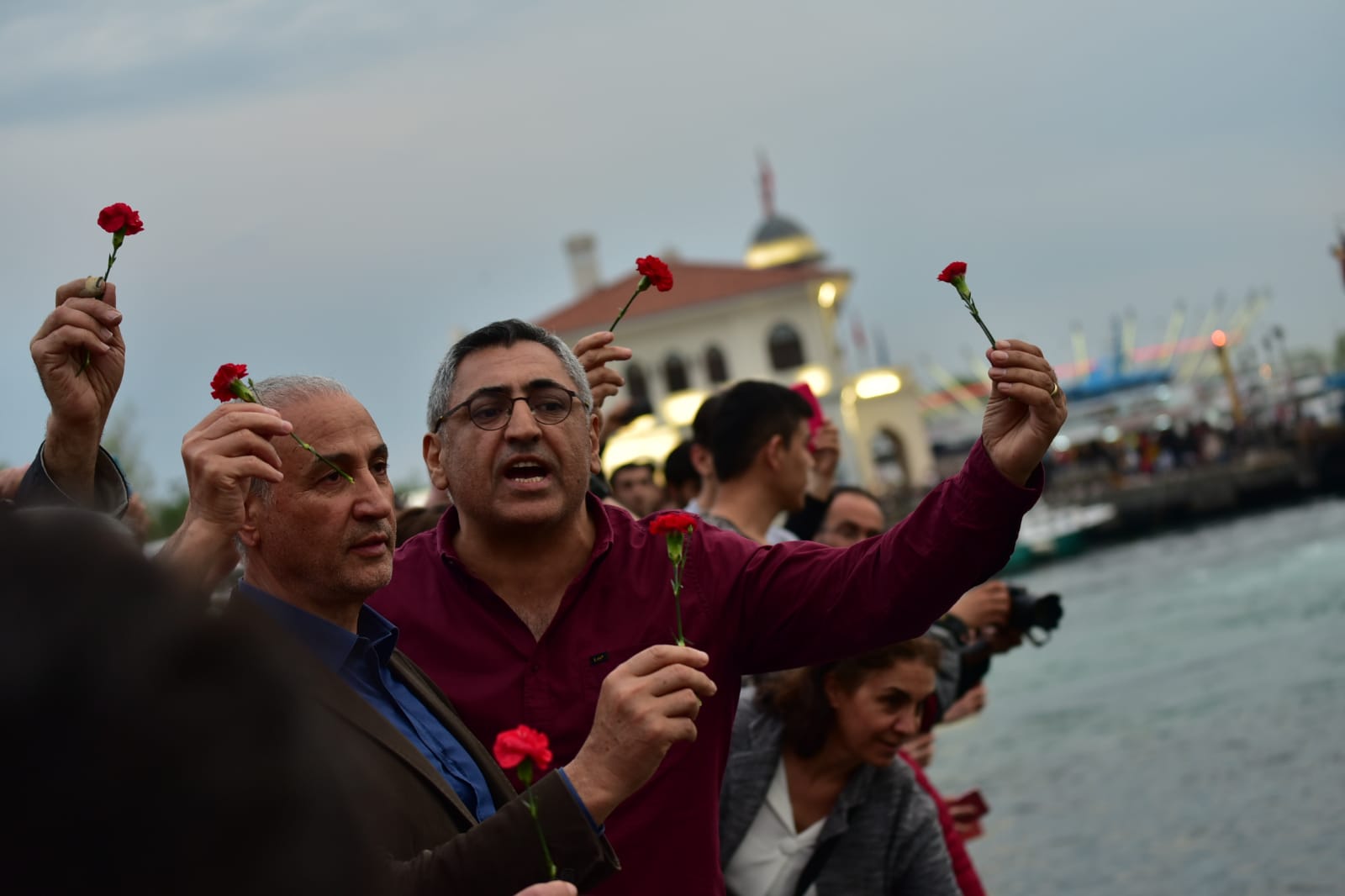 Sonrasında ise lokma duası verilerek lokmalar pay edildi. Karanfiller katliamda yaşamını yitirenler anısına rıhtımdan denize bırakıldı.