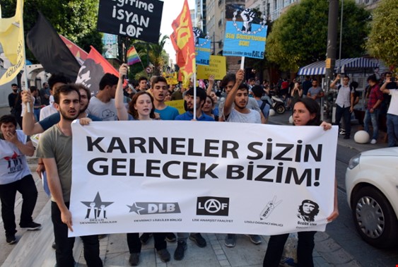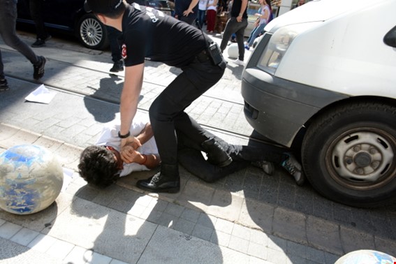 İstanbul’un Kadıköy ilçesindeki Süreyya Operası önünde bir araya gelen lise öğrencileri Boğa Heykeli’ne doğru yürüyüşe geçti. Ancak polis yaşları 14 ile 16 arasında değişen çocuklara sert bir şekilde saldırarak yaka paça gözaltına alındı.