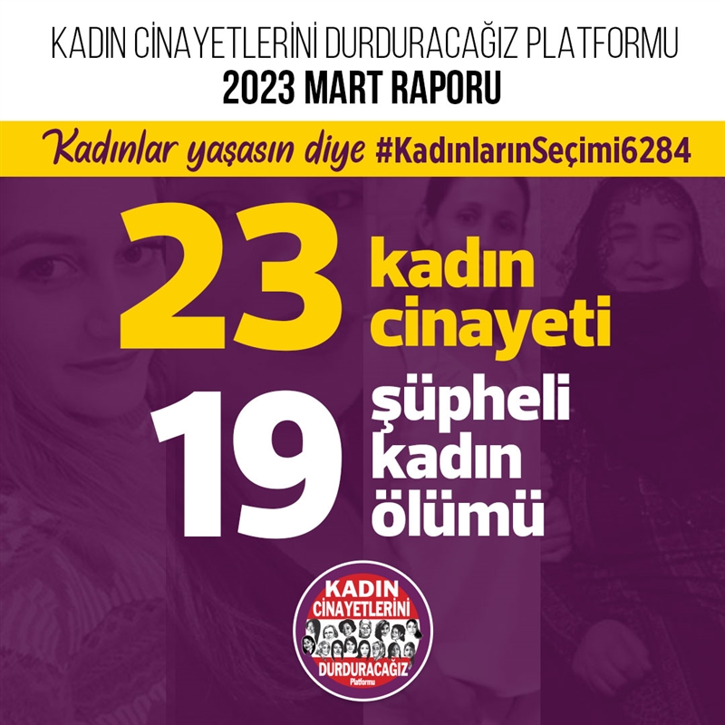 Mart ayında 23 kadının katledildiği, 19 kadının da şüpheli şekilde yaşamını yitirdiği bilgisine yer verilen raporda, kadınların 8’sinin boşanmak istemesi, ya da barışmayı, evlenmeyi ret ettikleri için 2’sinin ekonomik gerekçe, 1’inin bakım altında olduğu bahanesiyle katledildiği, 12’sinin ise hangi bahaneyle katledildiğinin tespit edilemediği aktarıldı.
