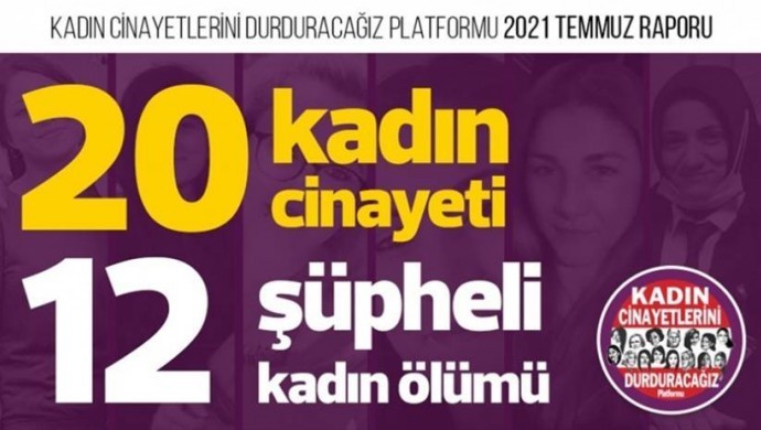 Kadın Cinayetlerini Durduracağız Platformu (KCDP), kadına yönelik şiddet çetelesinin Temmuz ayı raporunu yayınladı. Rapora göre, Temmuz ayında 20 kadın katledildi, 12 kadın ise şüpheli bir şekilde yaşamını yitirdi.