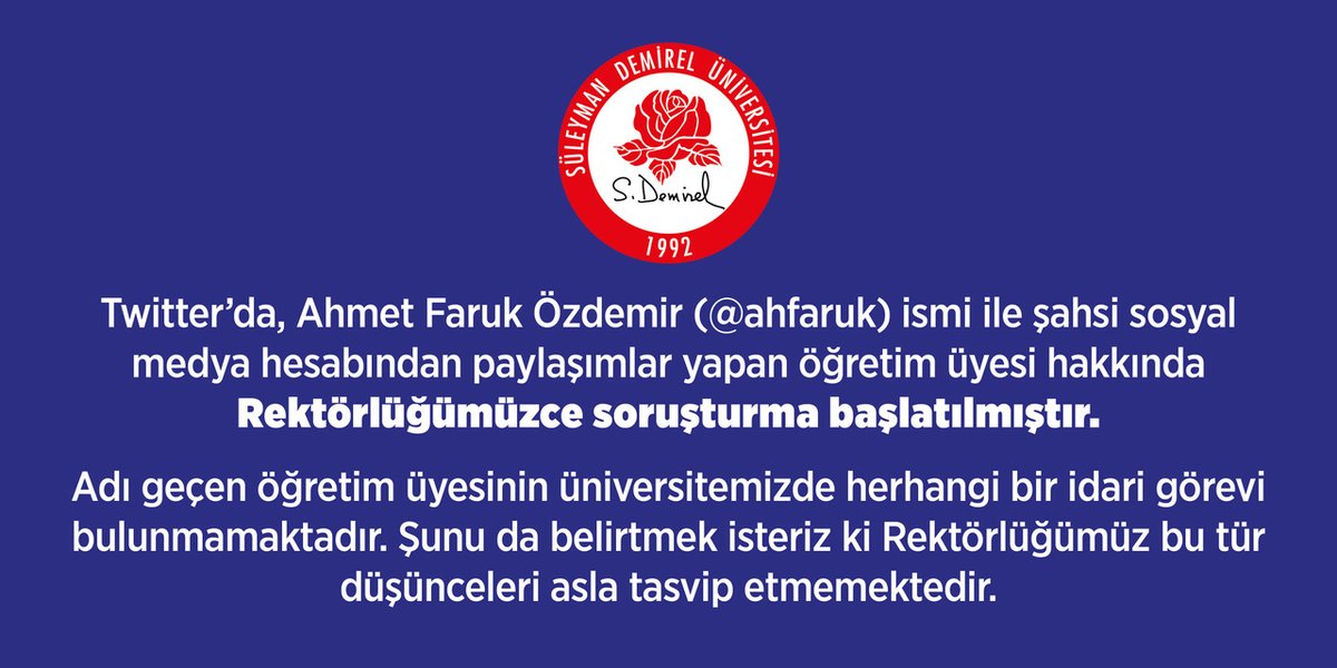Tepkiler üzerine Süleyman Demirel Üniversitesi’nin sosyal medya hesabından açıklama yapıldı.