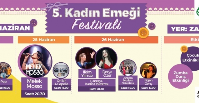 250 kadının el emeği ile yaptıkları ürünlerinin satışa sunulacağı festivalde, 7 konser, kukla ve palyaço gösterileri ile zumba dans etkinlikleri de 3 gün boyunca Ankaralılarla buluşacak.