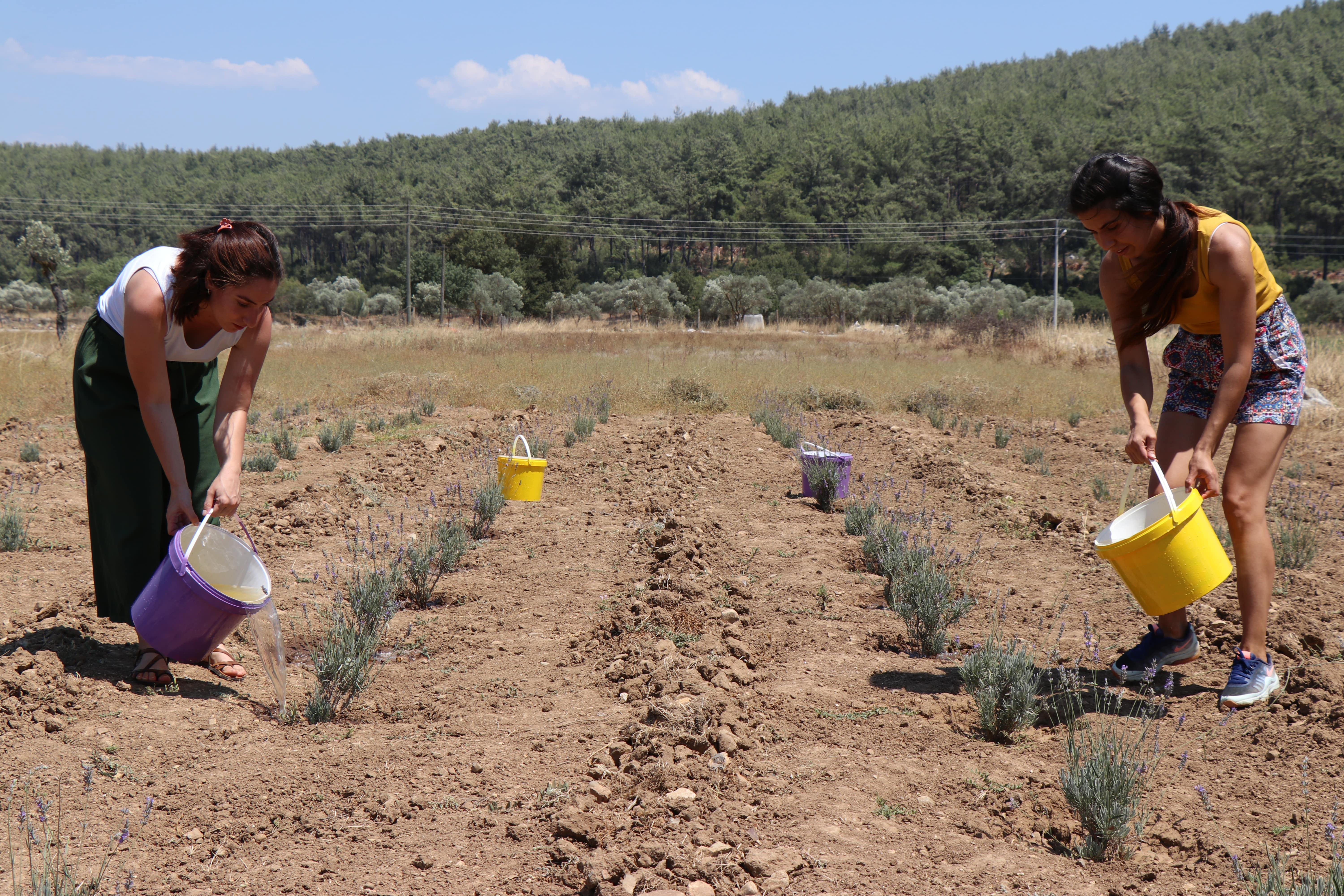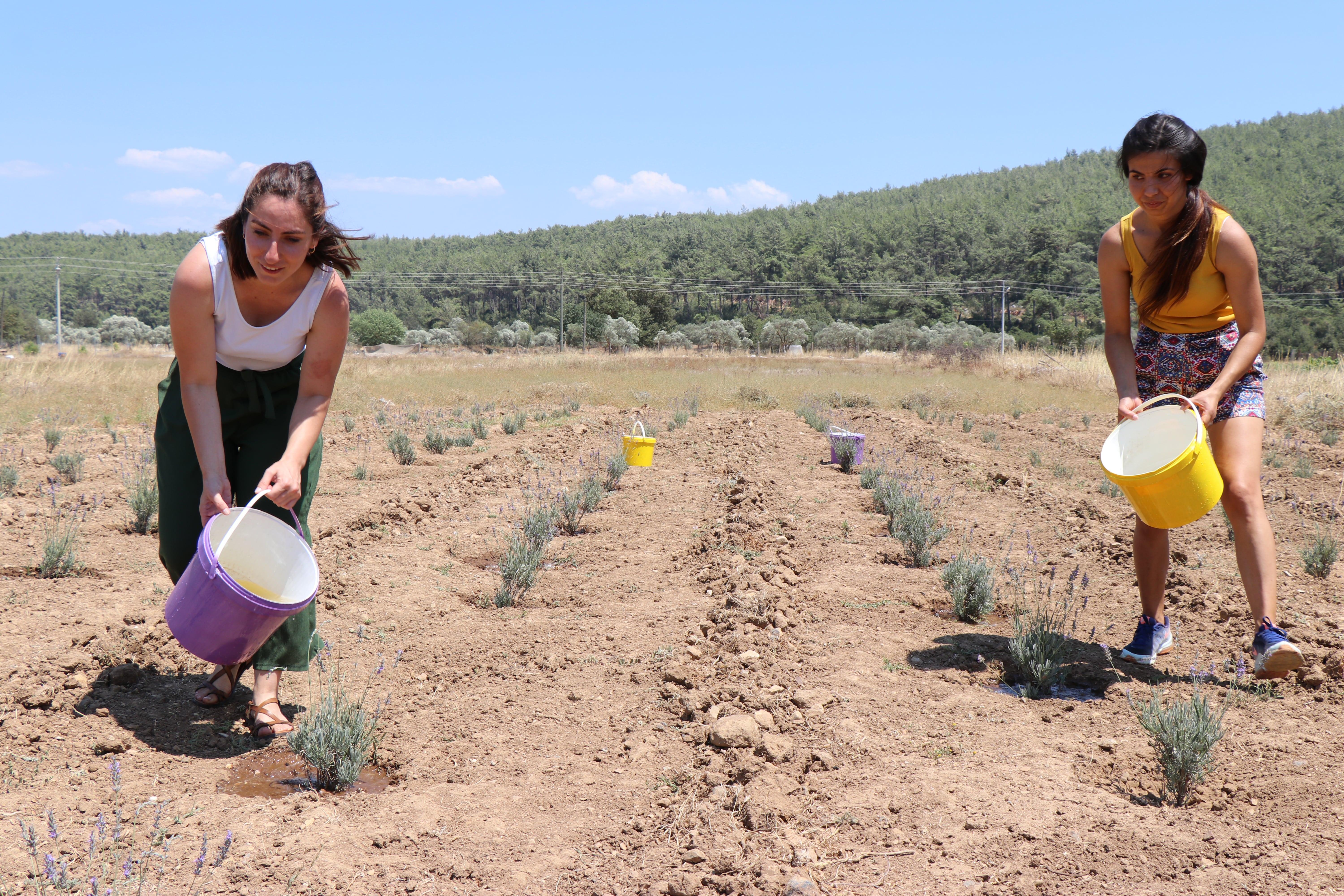 “Ocak ayında arkadaşlarla gençliği toplamak, birlik olmak adına toplantı düzenledik. Toplantı düzenlerken orada bir arkadaşım ‘Buraya bir lavanta tarlası oluştursak, lavanta diksek nasıl olur?’ diye bir fikir ortaya sundu. O fikir öylece bir kıvılcım ile doğdu. Sonra ben bunun üzerine düşünmeye başladım. Lavantanın internetteki araştırmalarına, para ve insan getirisine baktım. Nisan ayında lavanta ile ilgilenen mühendis bir arkadaşı buldum. Konuştuk ve Isparta’dan fidanlarını getirttim. İlk adımı böyle attım. Tarlayı ilk olarak komşumuzun traktörü ile sürdük. Arkadaşlarım, annem ve babam hepsi yardım ettiler. Çukurları açtık, fidanları diktik. Suyu kuyudan çekiyorum. Taşıma su ile değirmen döndürmeye çalışıyorum açıkçası. Şebeke suyu bağlatmayı düşünüyorum. Zaten çok su isteyen bir bitki değil lavanta. Aralıklarla suluyorum. Kovaları el ile taşıyorum.”