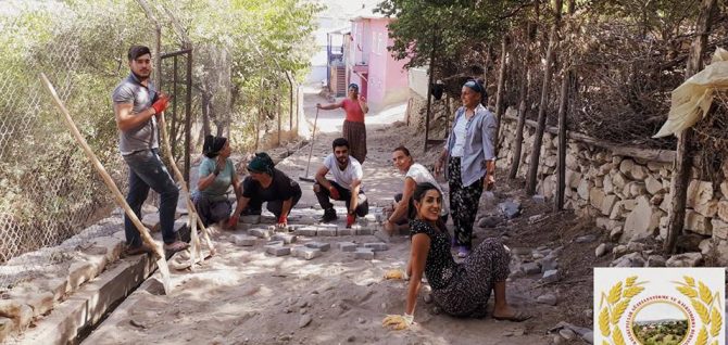 Dernek olarak 2017 yılında yolu düzeltmek için çalışmalara başladıklarını söyleyen İlarslan, “İlk olarak 10 kişilik bir grup halinde İl Özel İdaresine giderek Genel Sekreter Sayın Nazif Yıldırım Bey’le görüştük. Kendisinden asfalt altı temel malzemesi istedik. Kendisi bize bu yardımı sağladı. Gönderilen 10 kamyon temel malzemeyi Darıkent merkezden kepçeyle traktörlere yükleyip yolumuza taşıdık. Elle, kazma kürekle çalışarak yolumuza malzemeyi serdik. Yolumuz dar olduğu için kamyon ve greyder giremedi. Bu nedenle asfalt yapılamadı. Biz de 2018 yılında yolumuzu kilitli parke yapmak için çalışmalara başladık. Bu malzemeyi il özel idaresi kamyonlarıyla köyümüze taşıdık. Daha sonar traktörlerle Kalakup Sokağa getirip kadın-erkek el birliği ile kilitli parkeleri döşemeye başladık. Getirdiğimiz malzeme 250 metre civarı yolu kapladı. Köye gelen vatandaşlarımızdan aldığımız yardımlarla 1 kamyon kilitli parke satın alıp Kalakup sokak ve evlerin arasını bitirmek istedik” diye konuştu.(Özgür Dersim)