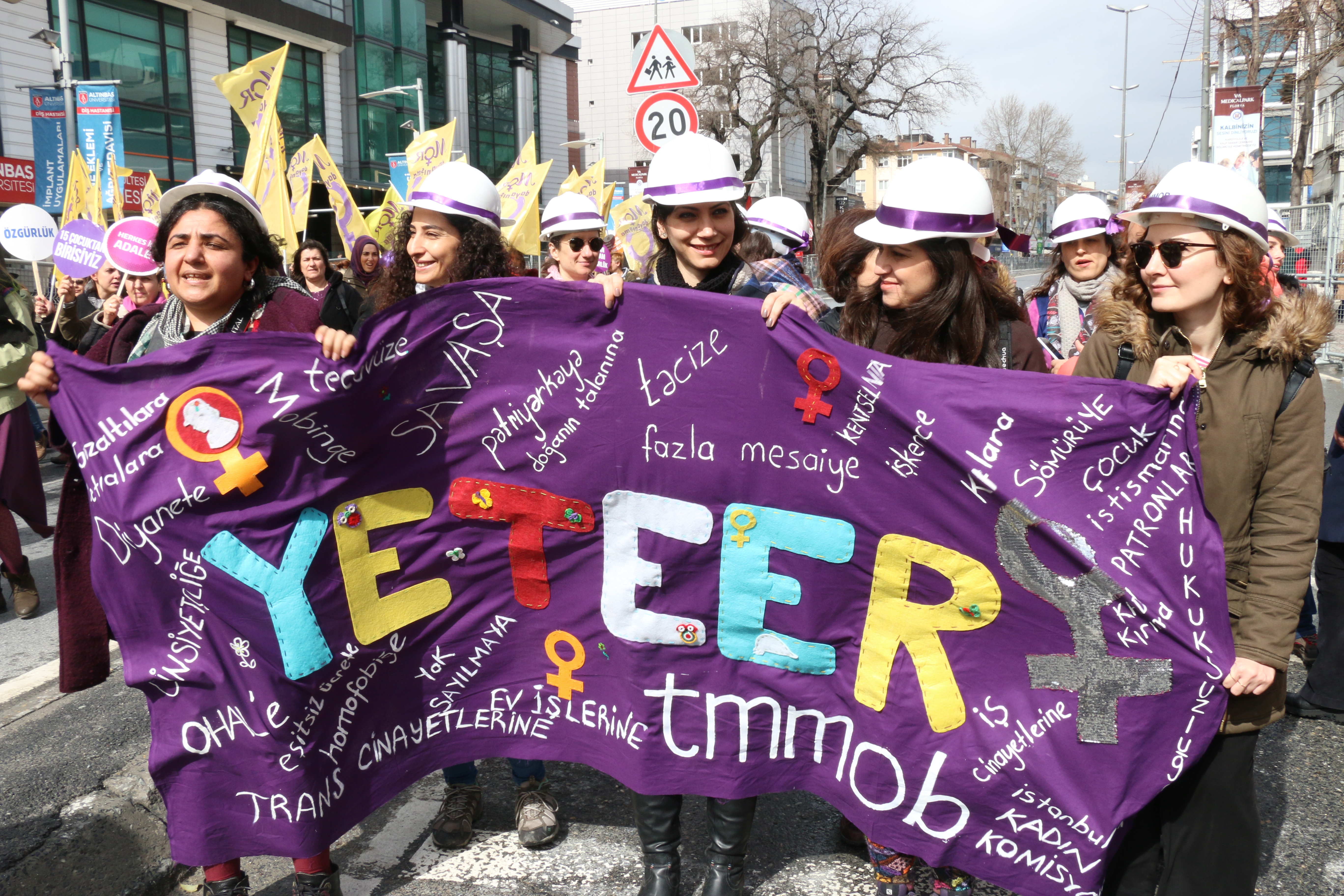 - ‘İşine geleni yapana erkek, kafasına koyduğunu yapanlara kadın denir’, ‘Erkek iktidar savaş biz, barış istiyoruz’, ‘Kadınlar sükutta değil isyanda güzel’, ‘Sokak seni çağırıyor’ gibi değişik pankartlar açıldı. (HABER MERKEZİ)
