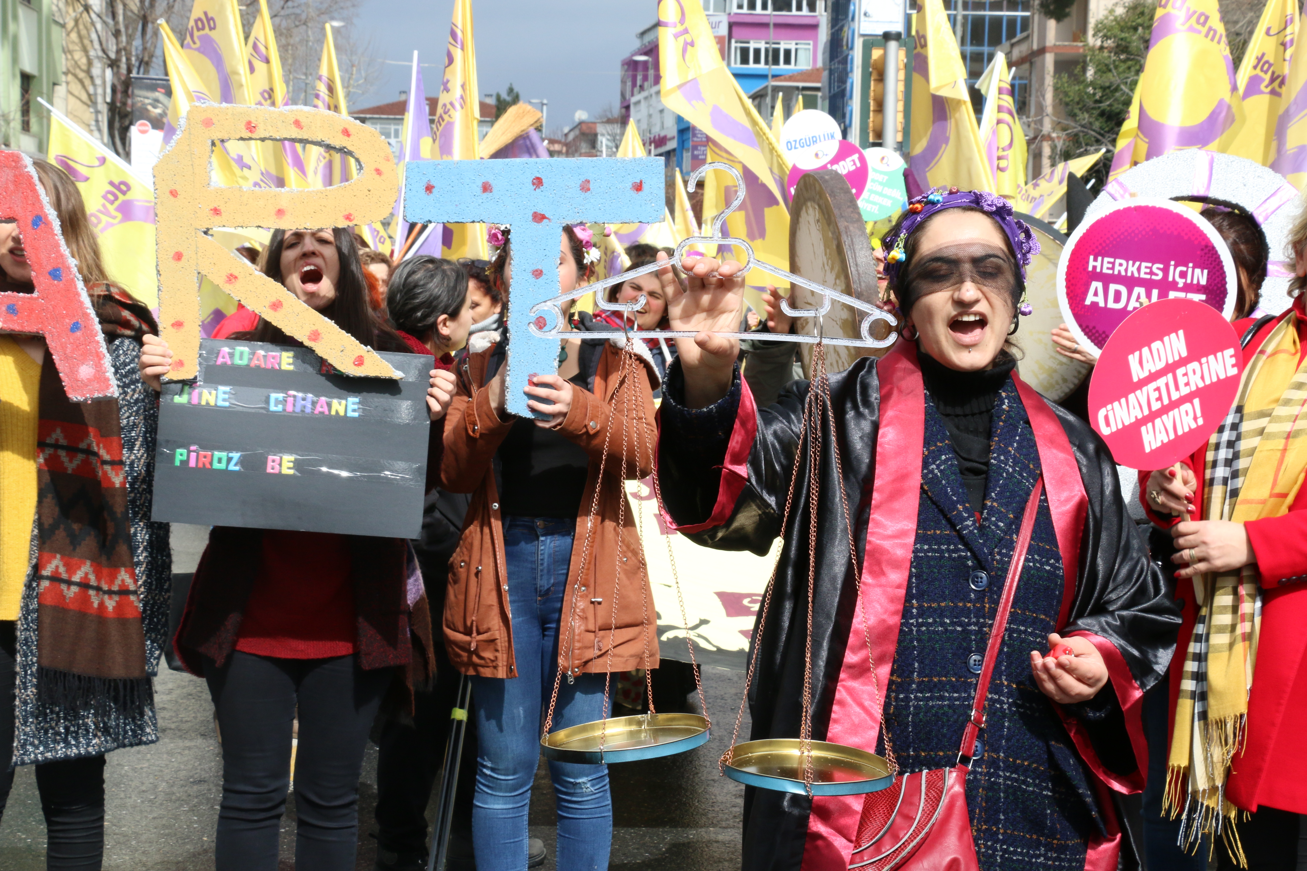 Pir Sultan Abdal Kültür Derneği Demokratik Kitle Örgütleri Sekreteri Gülizar Taşbilek de, “Kadın tacizi, tecavüzüne, yapılan haksızlıklara ve cezasızlığa hayır diyoruz” dedi.
