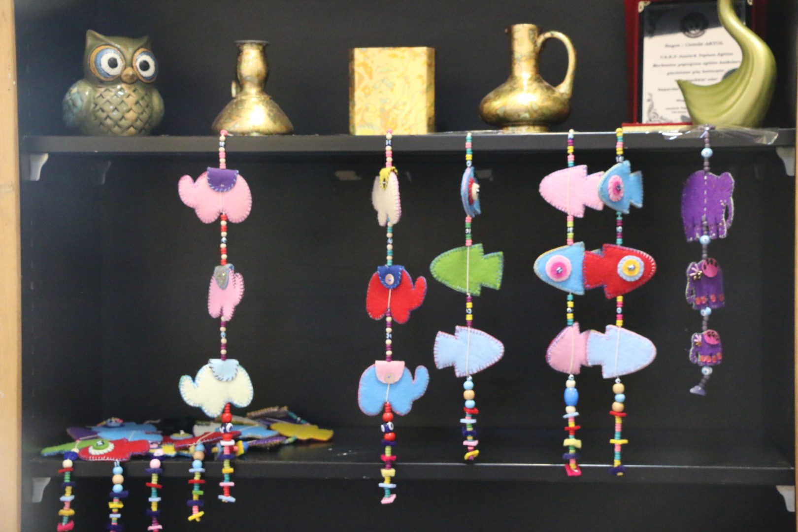 “Hem üretiyor hem de yaptığımız işten kazanç sağlıyoruz. Genelde evde çalışan ve emekli olup boşluğa düşmüş kadınlar kulübümüzün üyeleri arasında yer buluyor. Hakimler, avukatlar, doktorlar, psikologlar ve daha birçok meslek grubundan insanlar evden sıkılıp buraya geliyor. Çok kaliteli vakit geçiriyoruz. Karşılıklı bilgiler verilebiliyor bu ortamda. Yani yoğun bir dayanışma içerisinde çalışma yürütüyoruz. Örneğin geçmişte genç bir kadın gelip derneğimize üye olmak istedi. Kayıtlarımız dolduğu için kendisini dahil edemeyeceğimi söylemiştim. Biraz konuşma sonrasında ‘ama benim annem öldü biliyor musunuz’ dedi ve ben o anda çok üzüldüm. Ardından çalışmalara dahil ettik. 5 gün geldi ve doktoru ‘nereye gittiysen çok iyi yapmışsın, devam et çünkü iyi bir terapi olmuş’ demiş. Burası gerçek anlamda bir terapi merkezi. Aynı zamanda satışlar da yapıp elde ettiğimiz gelirlerle de çocuk okutuyoruz. Kadınların şiddet gördüğü dönemlerde onlara yardım da edilebiliyor. Kalacak yer veya ne gerekiyorsa yardım yapılıyor. Yani kadınlar burada hem parasal hem de fikirsel anlamda birbirlerine çok yardımcı oluyor. Her zaman söylediğim şey; kadınların evde oturmaması gerektiği. Bu tür yerlere gelsinler. Ufukları genişlesin, neler yapıyoruz görmeleri lazım. Ben 42 yaşımda emekli oldum. Evde oturuyordum. Bir arkadaş tavsiyesi üzerine kurslara gitmeye başladım. Ahşap boyamaya başladım derken öğretmen olmam yolunda bir teklif aldım. 45 yaşından sonra en çok sevdiğim mesleğime ulaşıp öğretmen oldum. Hiçbir zaman geç değil. Ömür boyu eğitim alınabilir. Şu an 61 yaşındayım ve geçen sene ustalık belgemi aldım. Yani bu saatten sonra ‘aman ne yapacağım’ denmemeli. Çok şey yapılıyor çok şey üretiliyor.”
