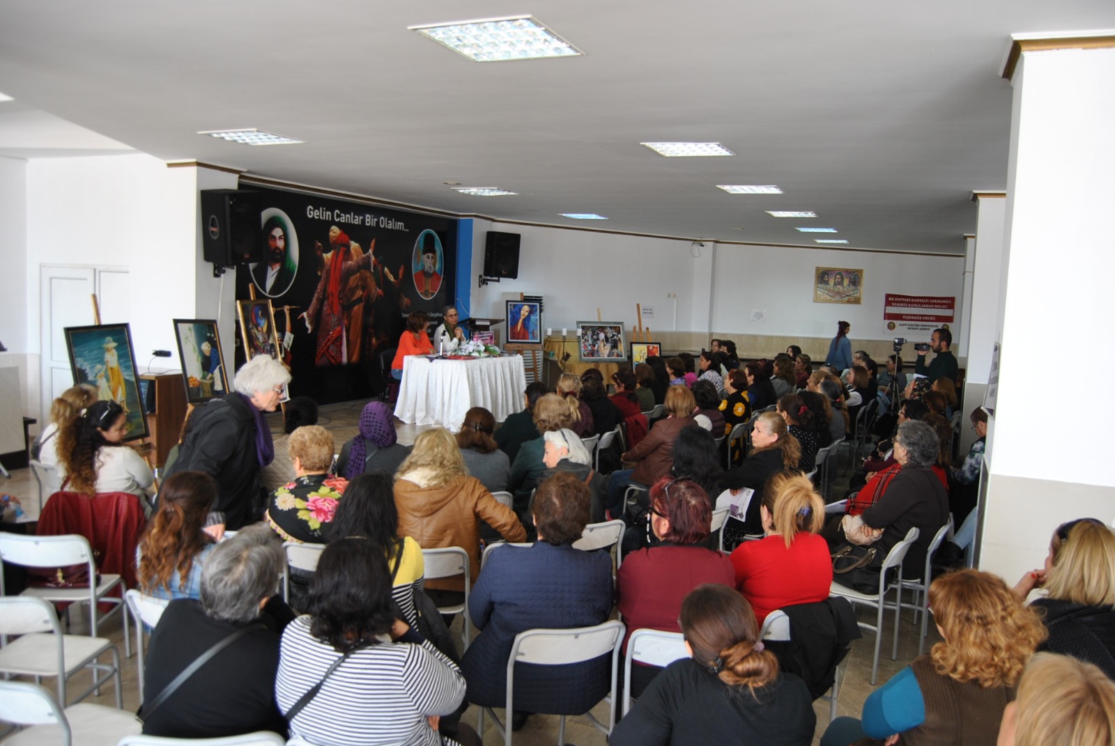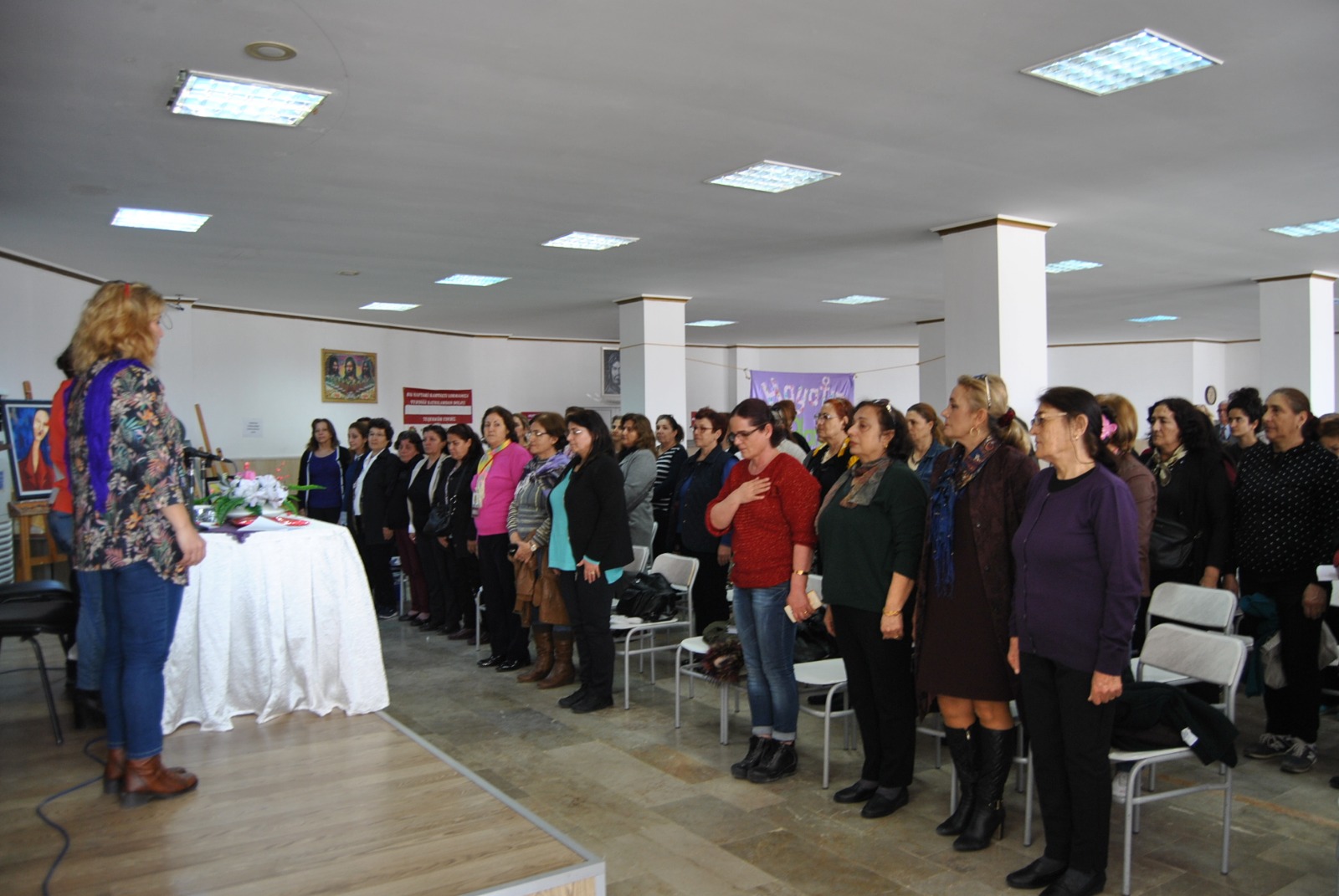 Yüzlerce kadının katıldığı etkinliğin açılış konuşmasını yapan Mersin Cemevi Kadın Kolları Başkanı Zeynep Kaya “Kendi sesimize yabancılaşmadan biraraya gelip konuşmak ve sorunlarımızı sahiplenip çözmeye çalışmak bizim için çok önemlidir. Biz kadınlar yaşamın temel taşlarını oluşturmamıza rağmen cinsiyetimizden kaynaklı her türlü baskıya ve şiddete maruz kalıyoruz. Dünyada ve topraklarımızda süren savaşların bitmesi ve barışın hayat bulmasını en çok isteyen biz kadınlarız. Çünkü doğamız gereği biz kadınlar yaşama can veriyoruz. Demokrasi mücadelesi verirken, şiddete maruz kalarak öldürülen tüm kadın canlarımızı burada sevgi ve saygı ile anıyoruz” diye konuştu.